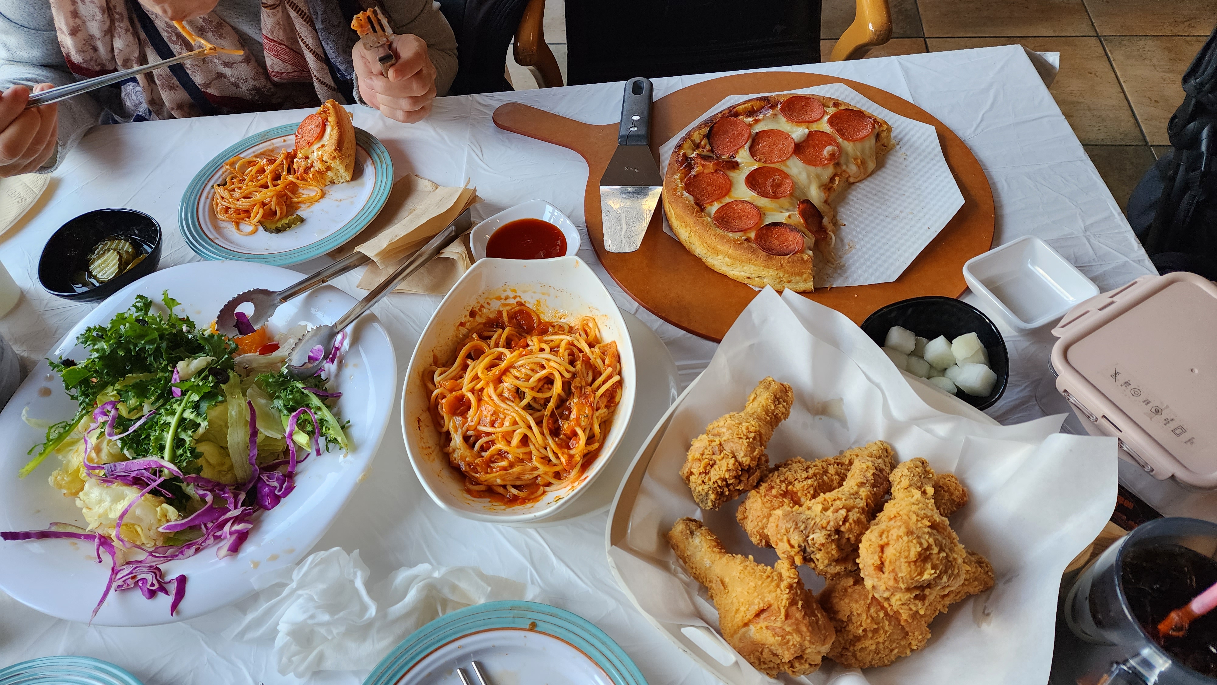 저희는 치킨, 시카고피자, 샐러드, 파스타까지 시켰는데 다 맛있더라고요!!