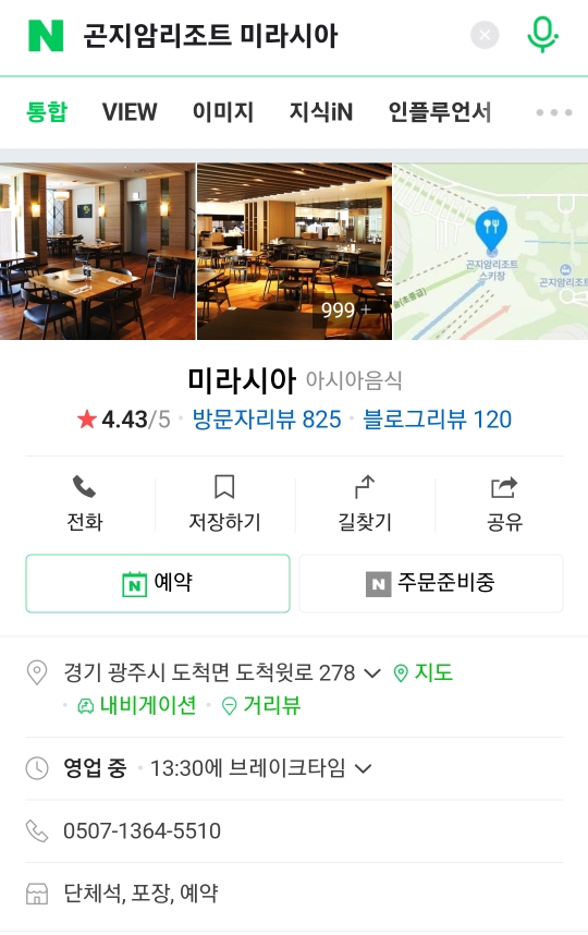 네이버에 곤지암리조트 미라시아 검색하면 바로 예약할 수 있는 페이지가 나와요.