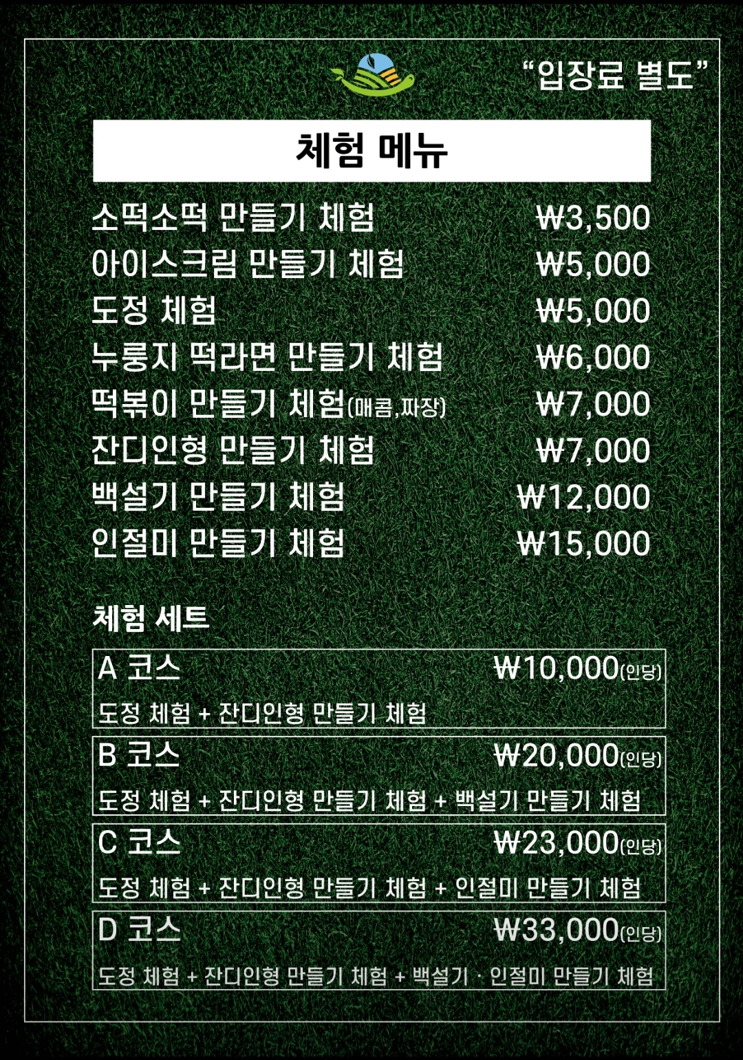 따로 예약할 필요 없이 운영시간 내에 방문하시면 여러 가지 체험과 먹을거리들을 즐길 수 있답니다