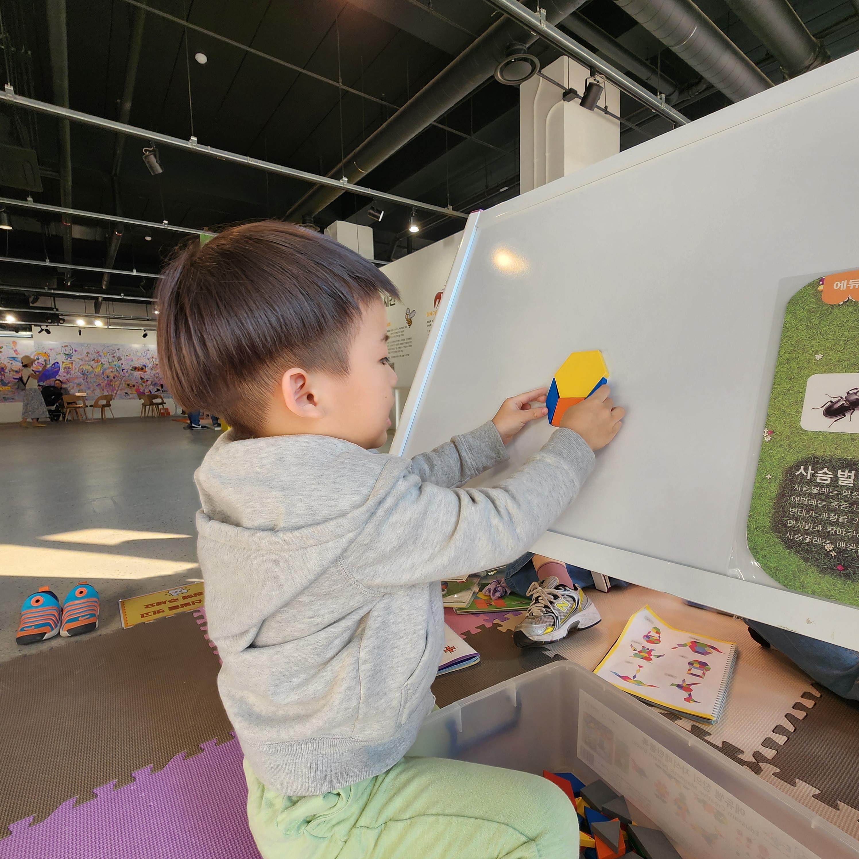 그리고 색칠하는 공간, 블럭 만드는 공간, 보드게임 공간 등등으로 나뉘어 있어요.