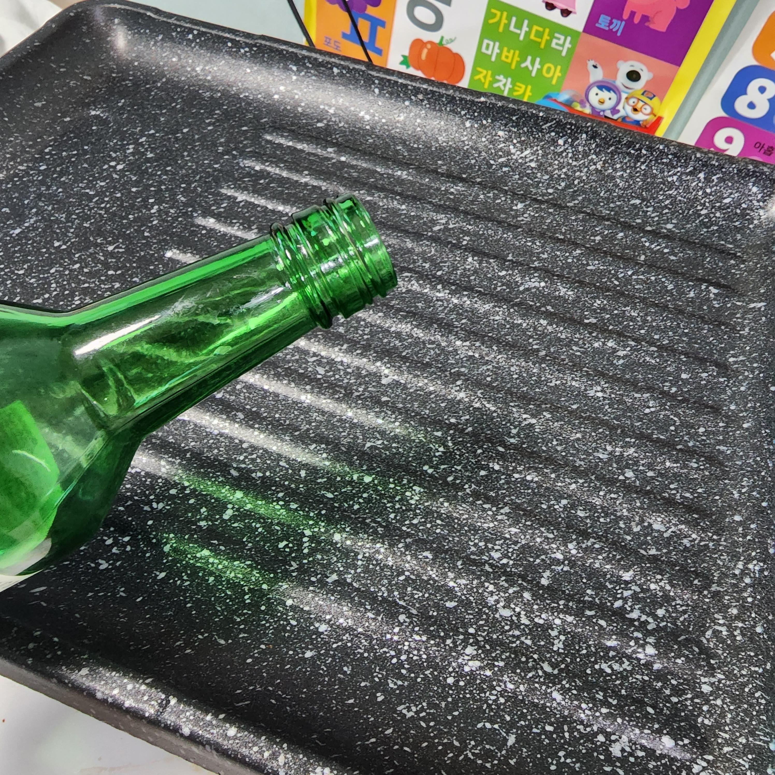 마지막으로 다 먹고 판을 닦을 땐 남은 소주 조금 샤락 부어주구 키친타올로 슥슥 닦으면 아주 말끔하게 싹 닦여요. 코팅이 정말 잘되어 있어요. 매직쿠킹팬 짱.