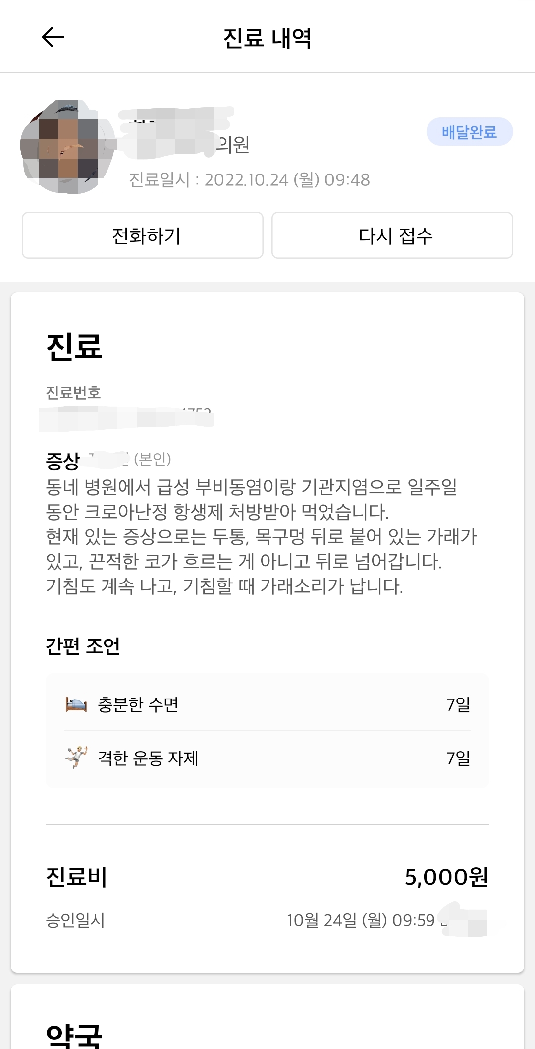 진료보실 때는 저처럼 증상을 자세히 쓰는 게 의사의 정확한 진료 및 처방에 도움이 됩니다. 물론 진료요청하고 나면 의사의 전화가 오는데요. 말로 횡설수설 설명하는 것보다 미리 텍스트로 써놓으면 알아보기도 쉽고 빠르고 정확한 진료에 효과적인 것 같아요.