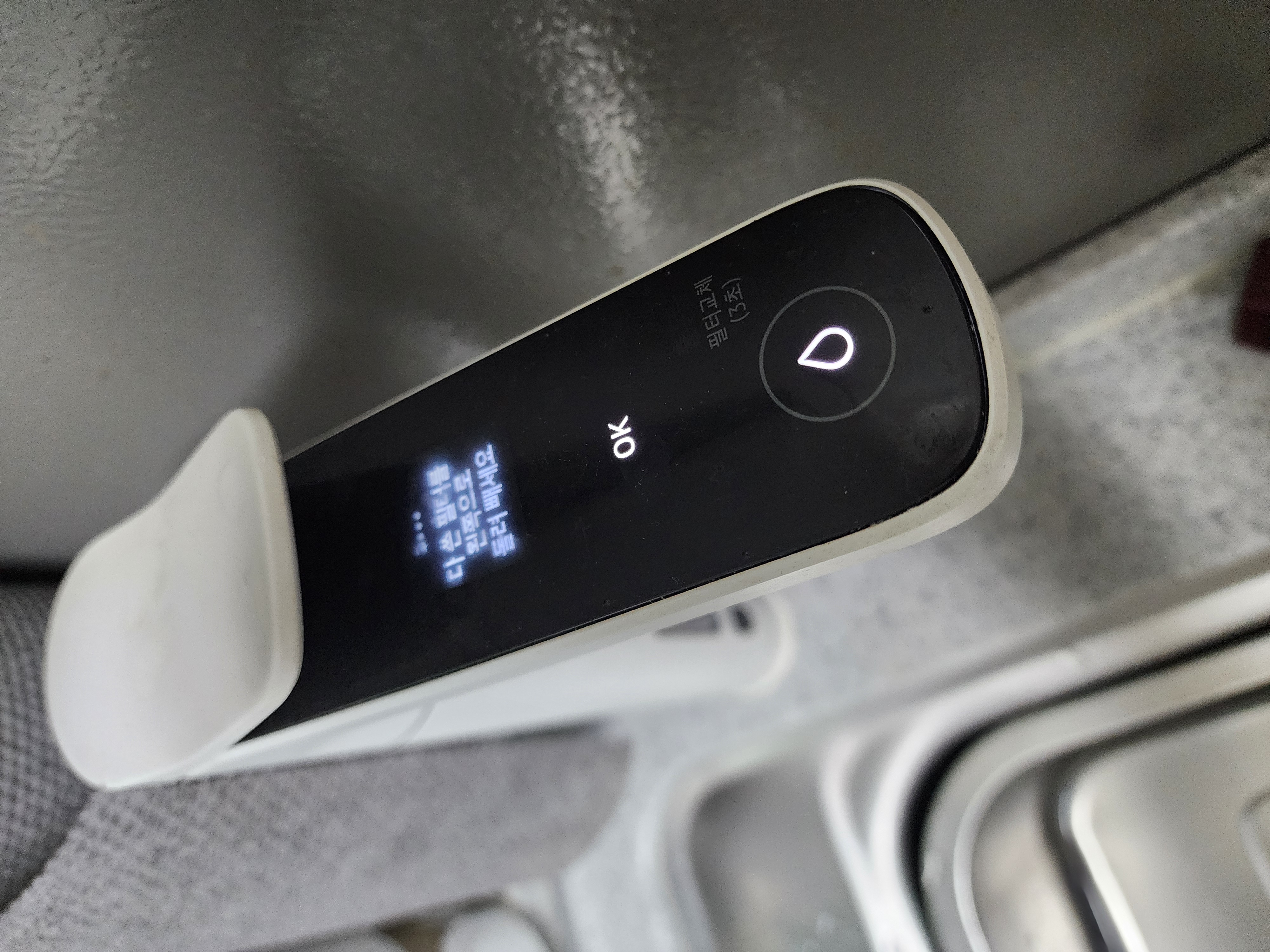 4. 정수기 디스플레이 문구를 확인하고 OK 버튼을 누릅니다.