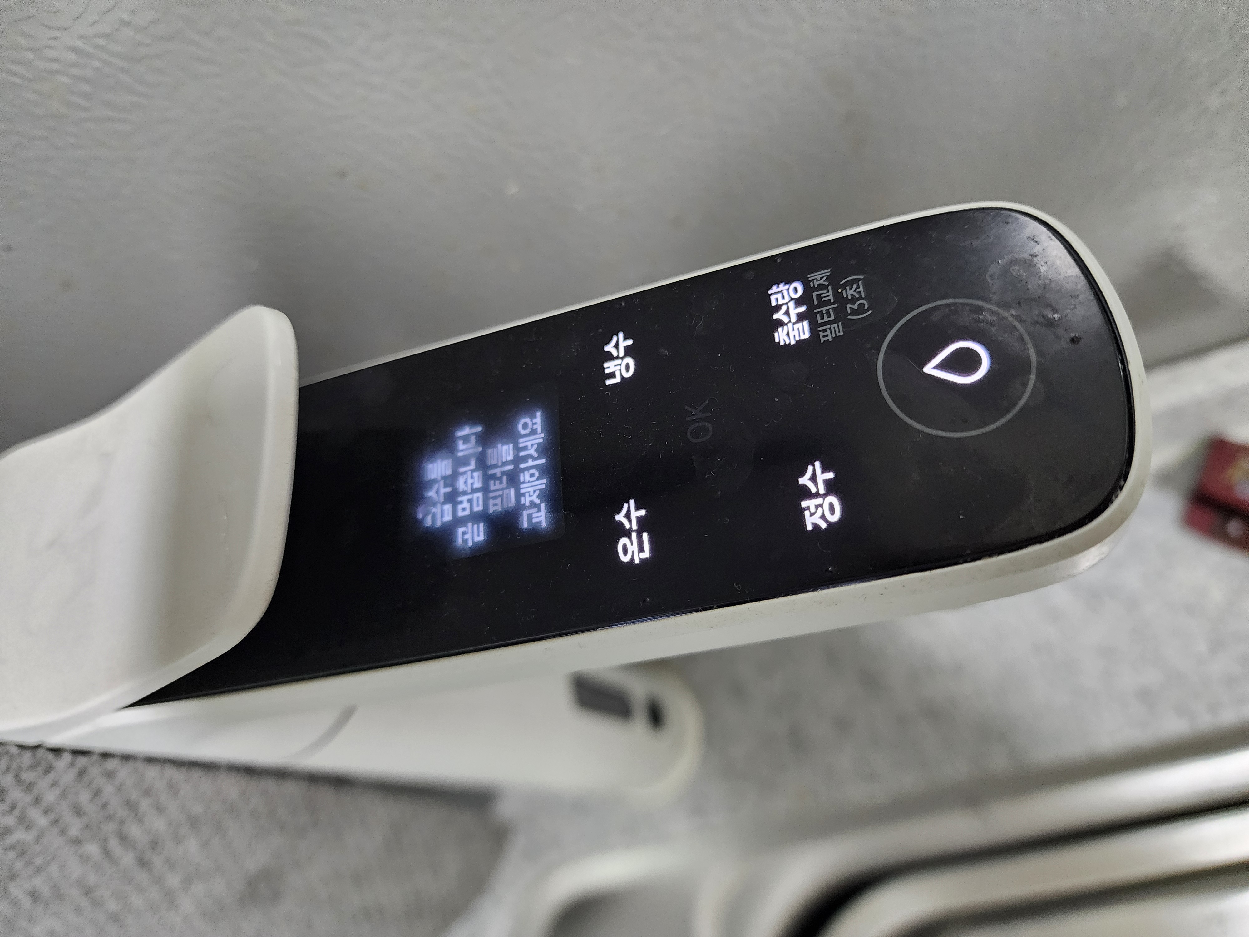 1. smart things 어플에서 필터 잔여량 확인 및 정수기 디스플레이에서 "급수를 곧 멈춥니다. 필터를 교체하세요." 문구를 확인하세요.