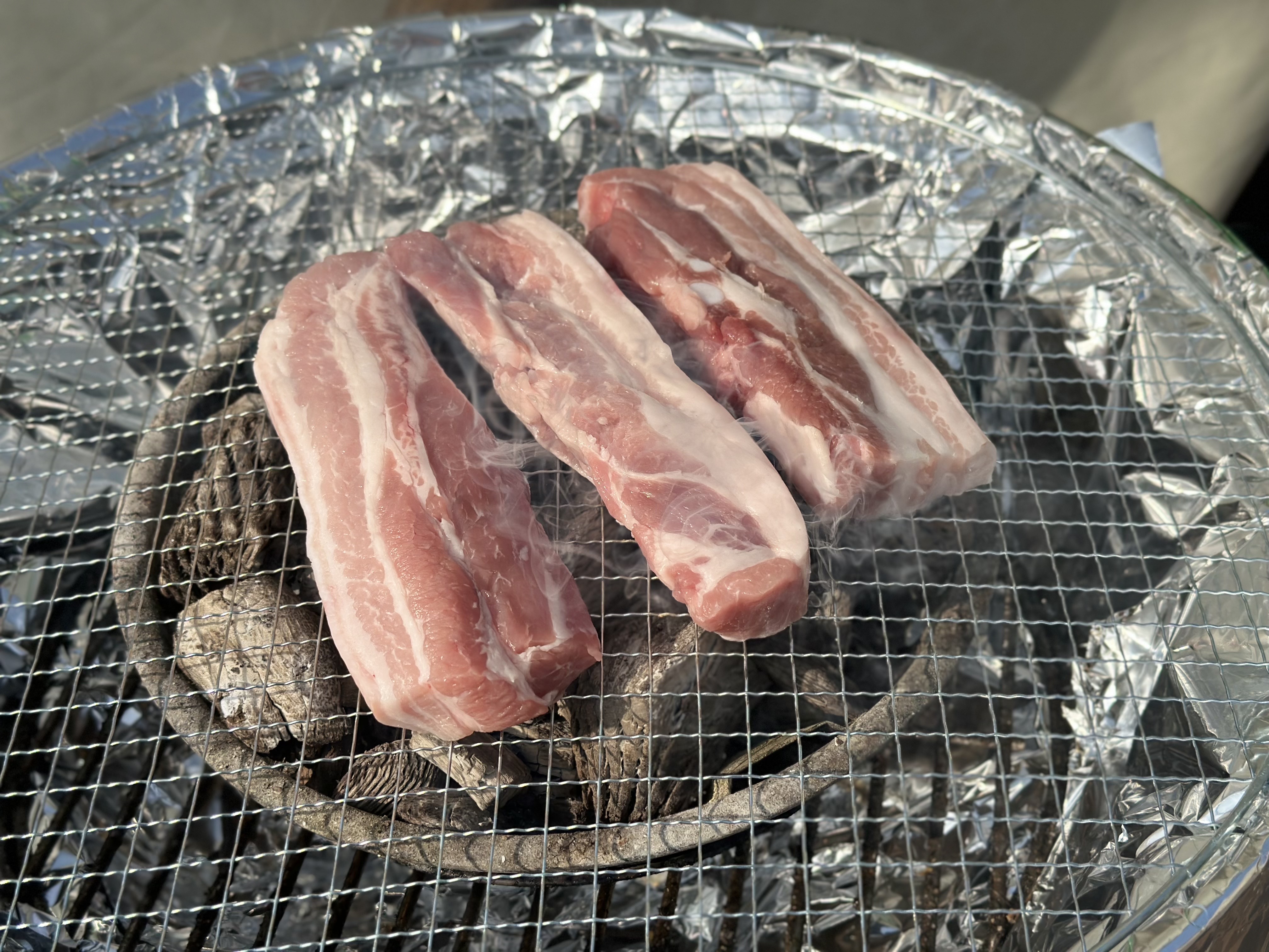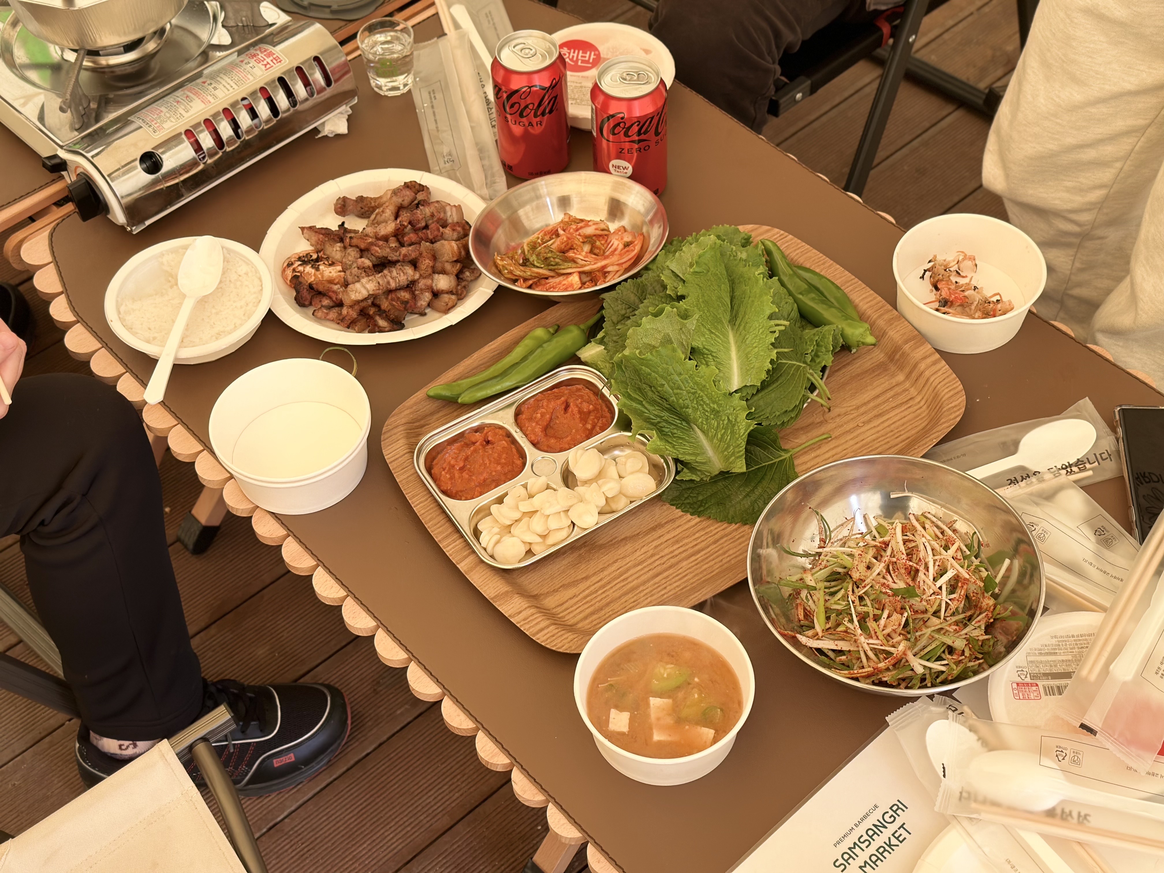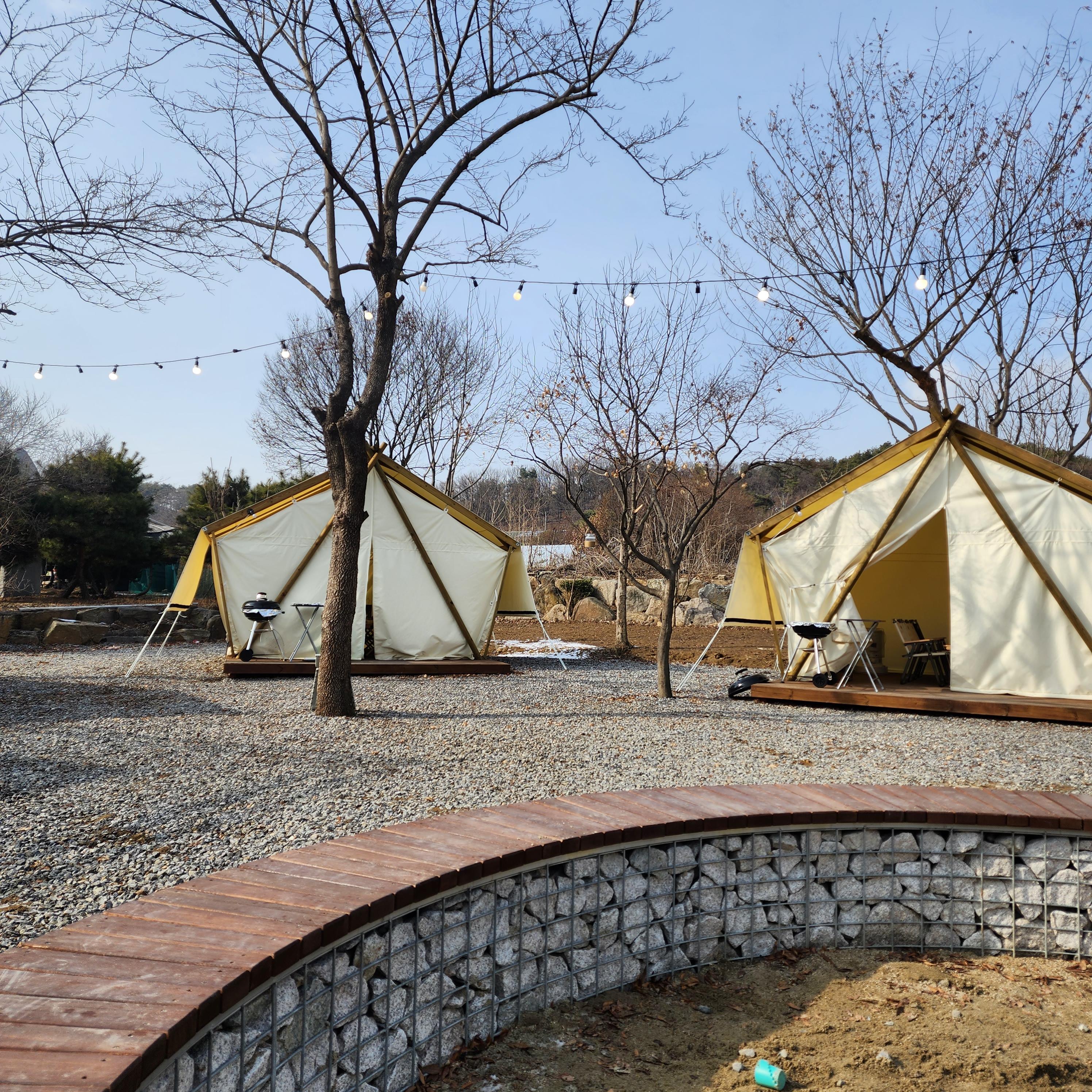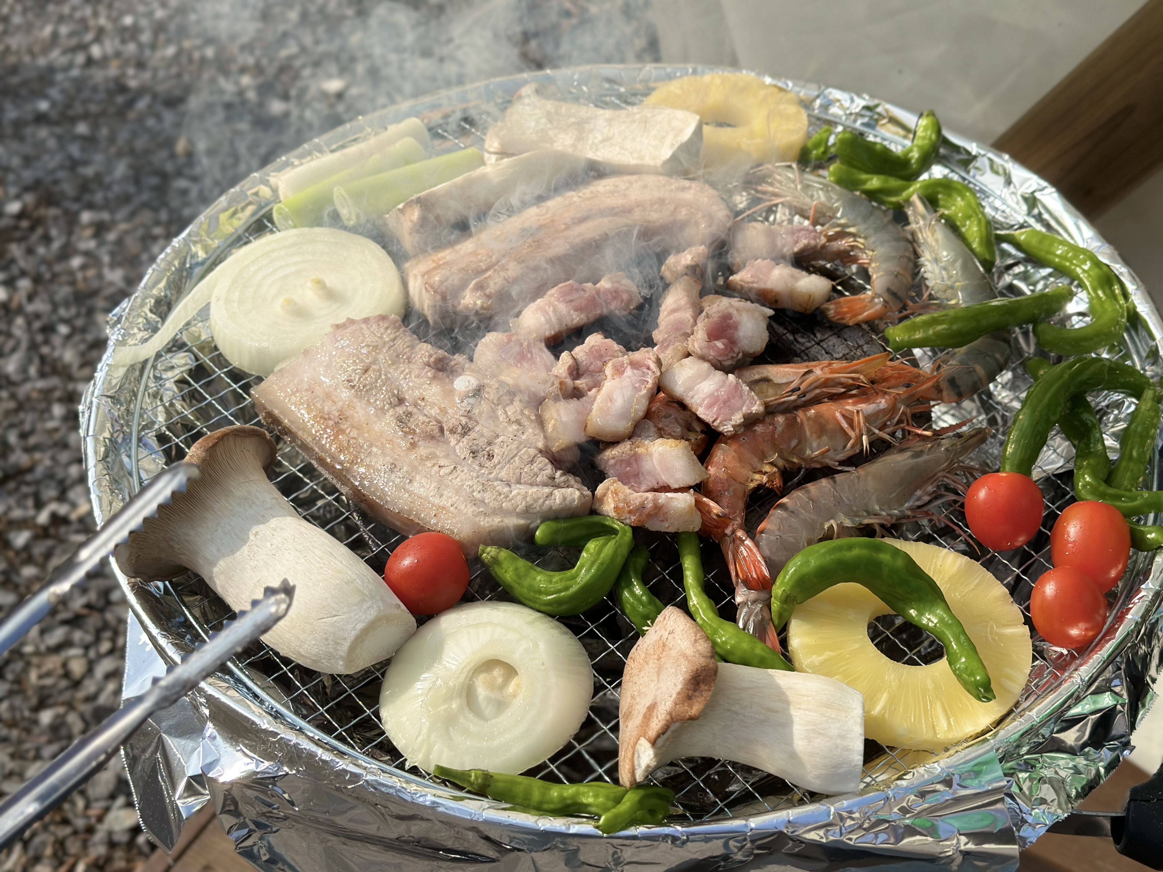 그리고 텐트 앞에 숯불구이 준비되어 있어요~