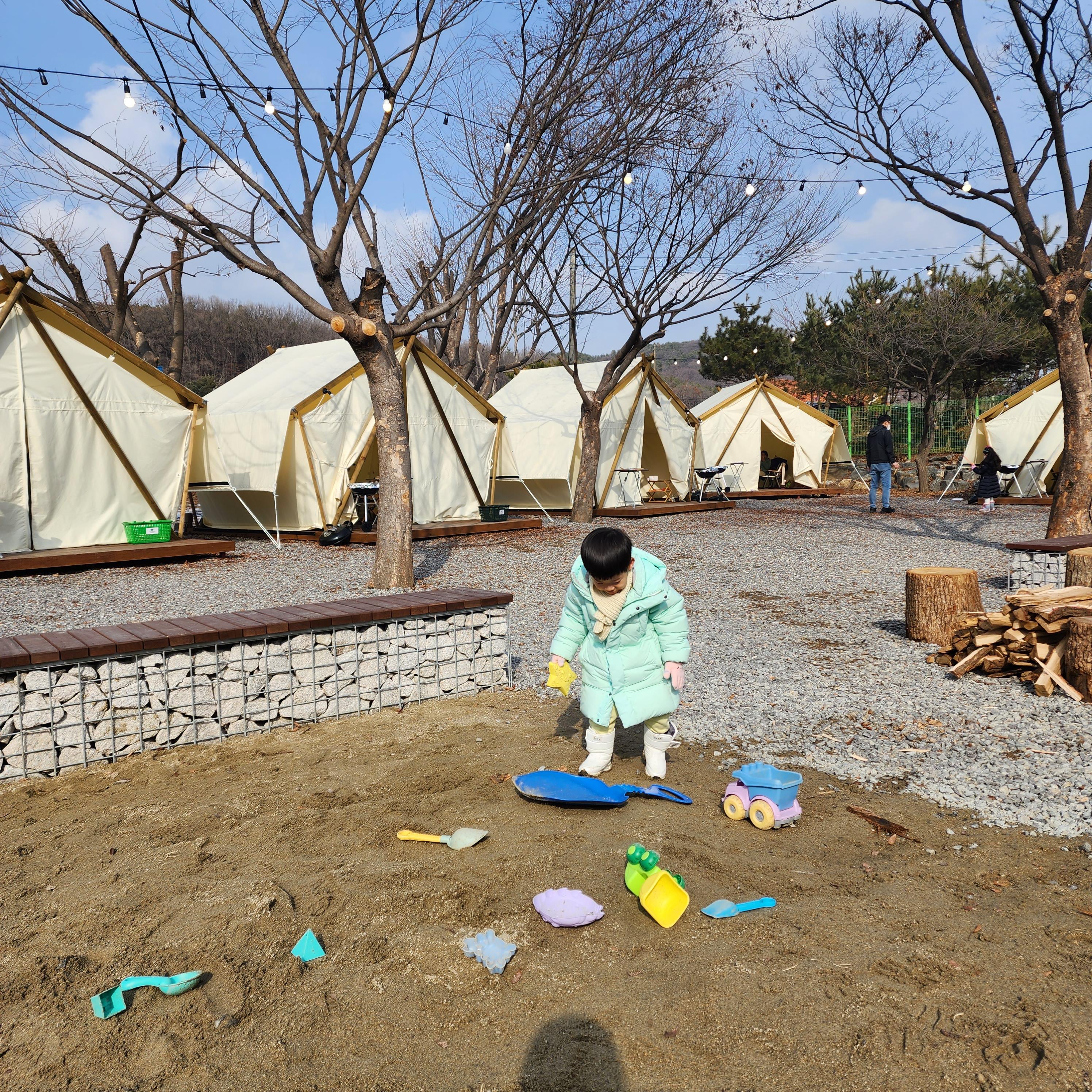 캠핑장 안에 모래놀이 할 수 있게 공간이 있어요~