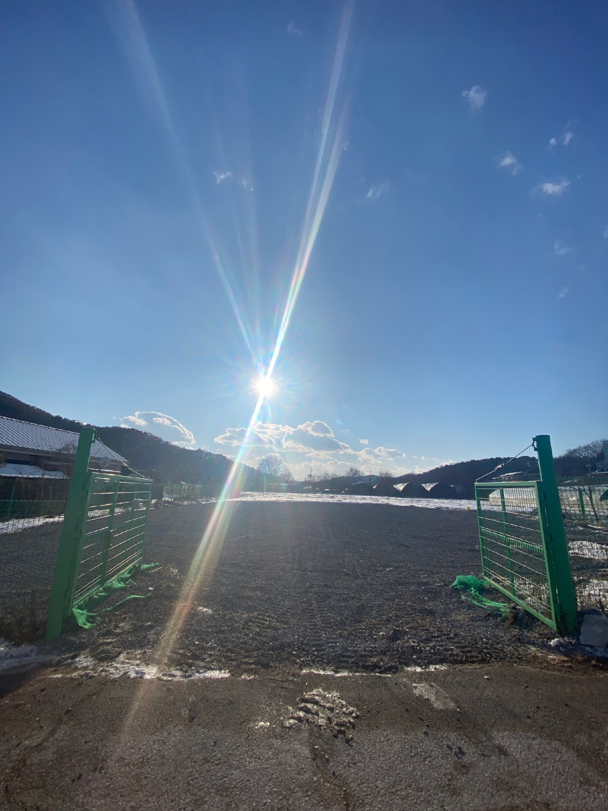 초록 철문이 활짝 열려 있어요~