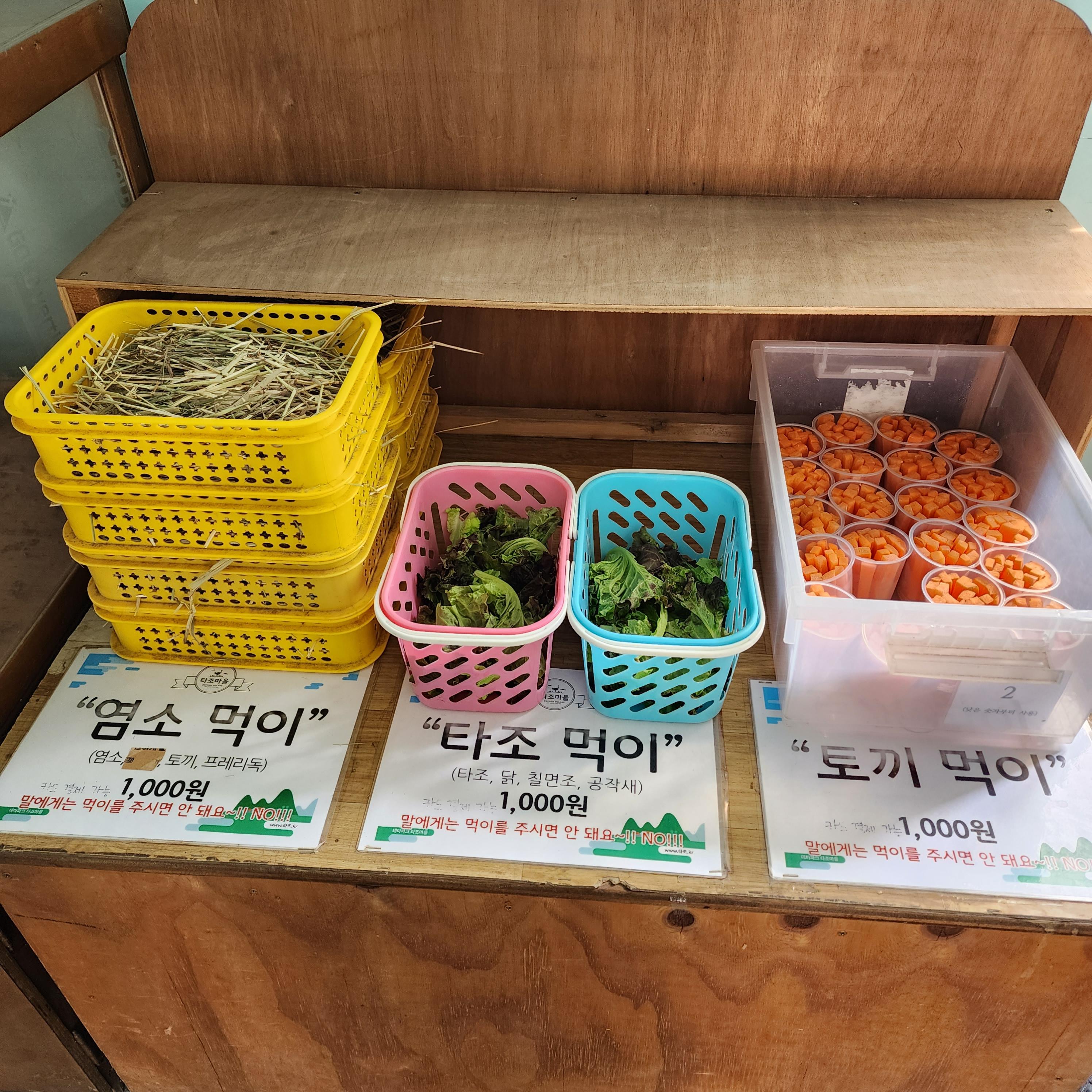 우리는 아기만 과자 하나 사고, 동물 먹이만 사고 입장했다.