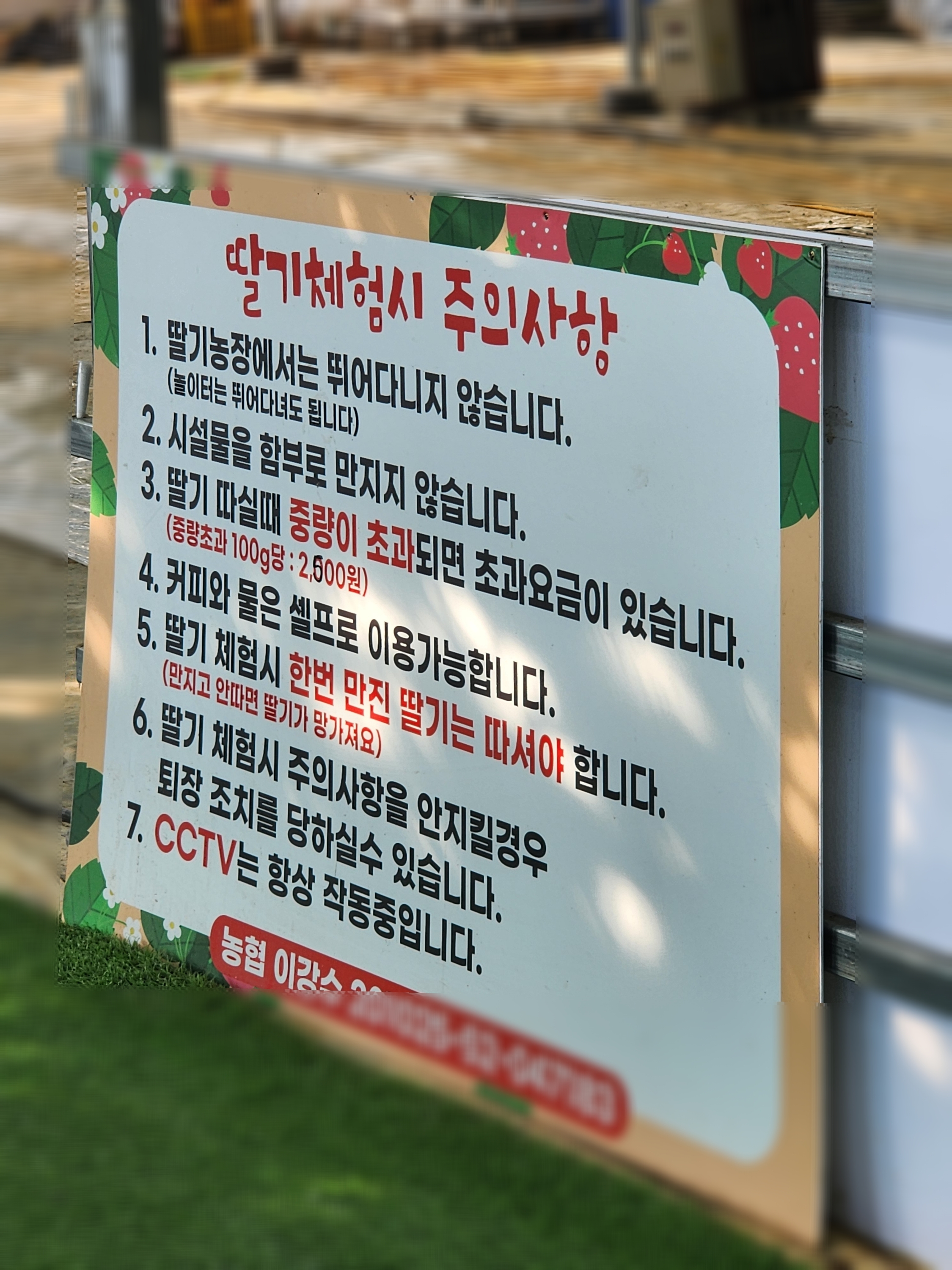 딸기체험 시 주의사항에 대해 적혀 있어요.