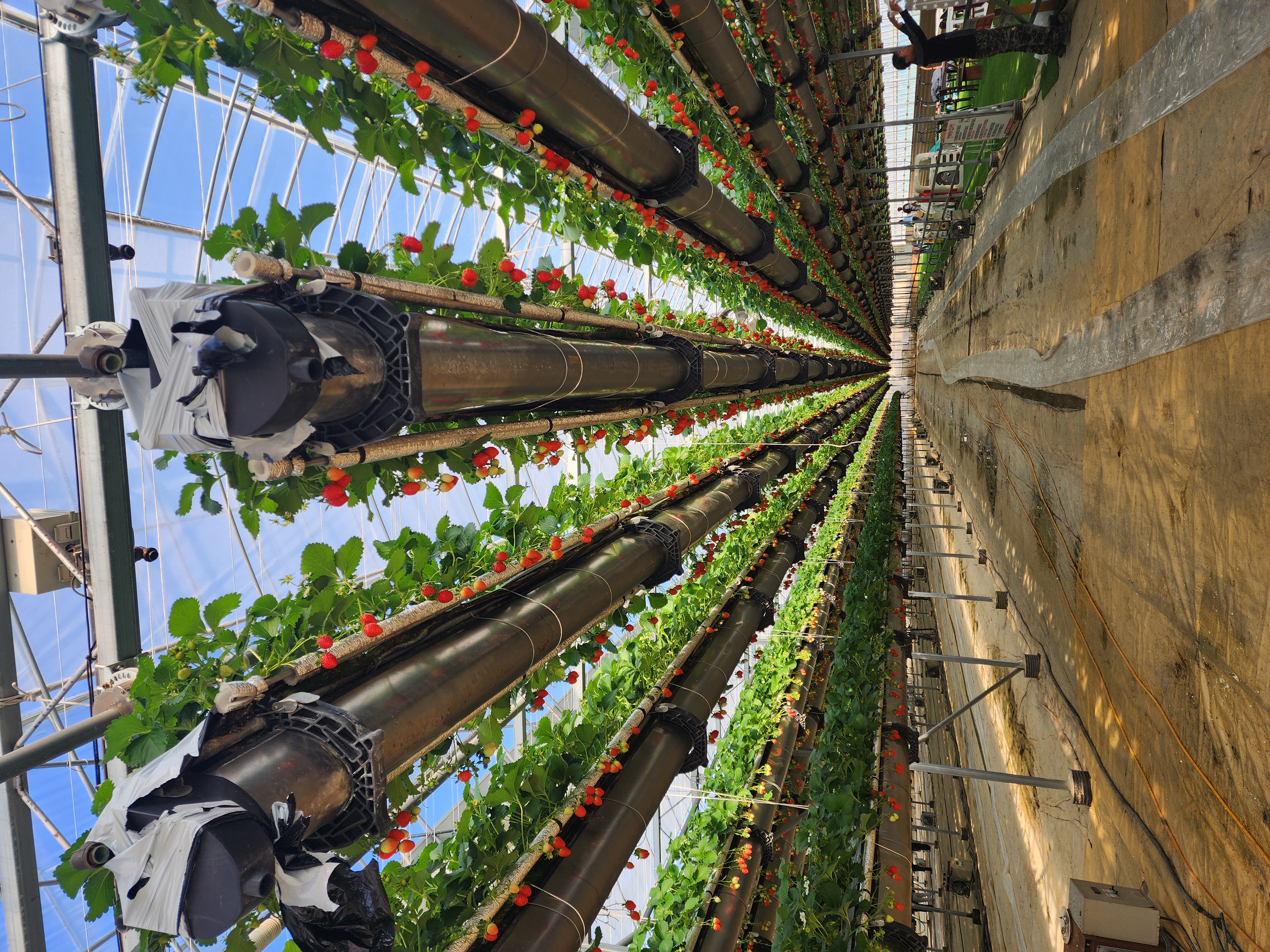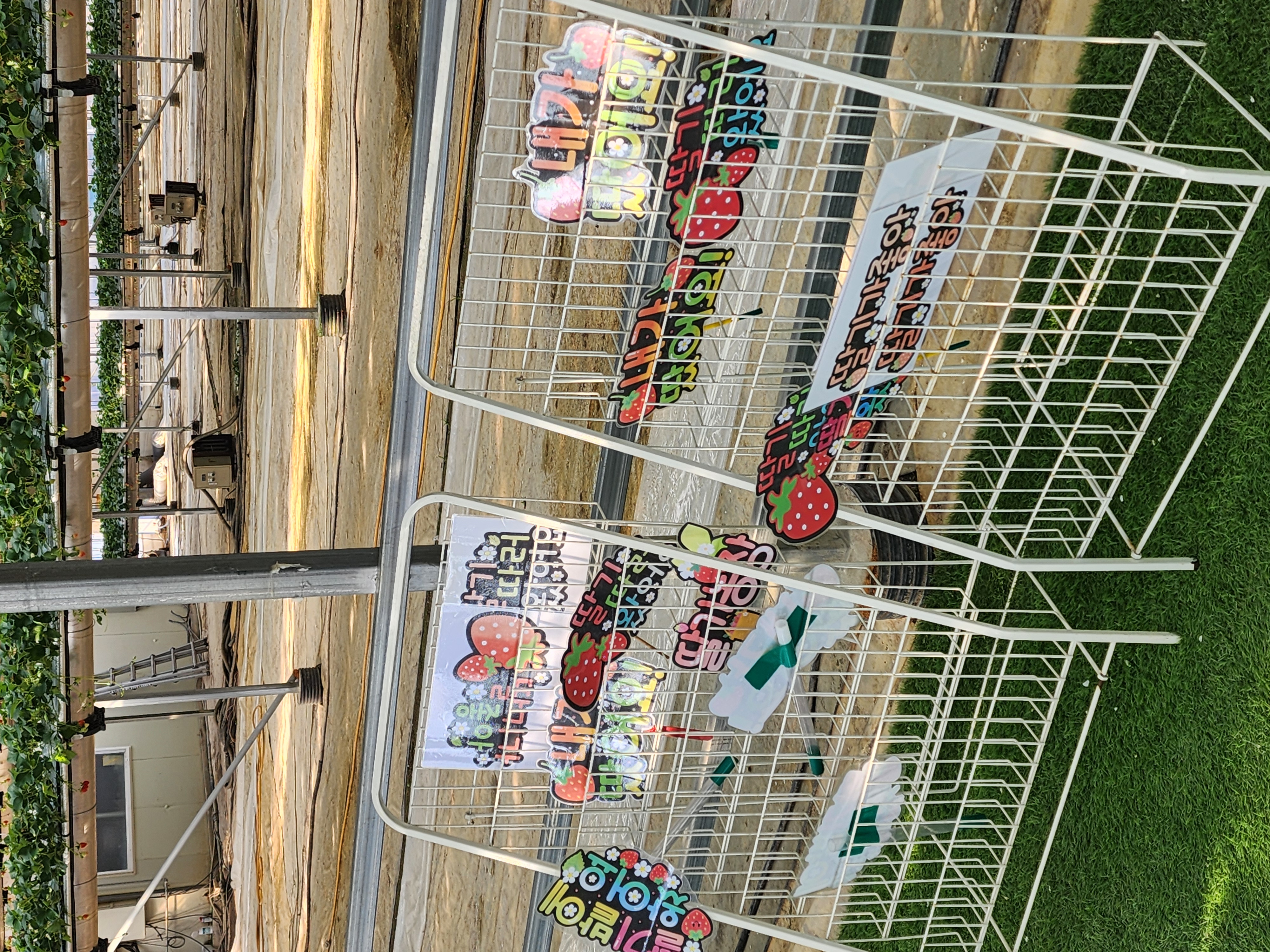 평소엔 이렇게 위로 딸기들이 올라가 있다가 체험 때가 되면 아이 키에 맞게 내려주십니다.