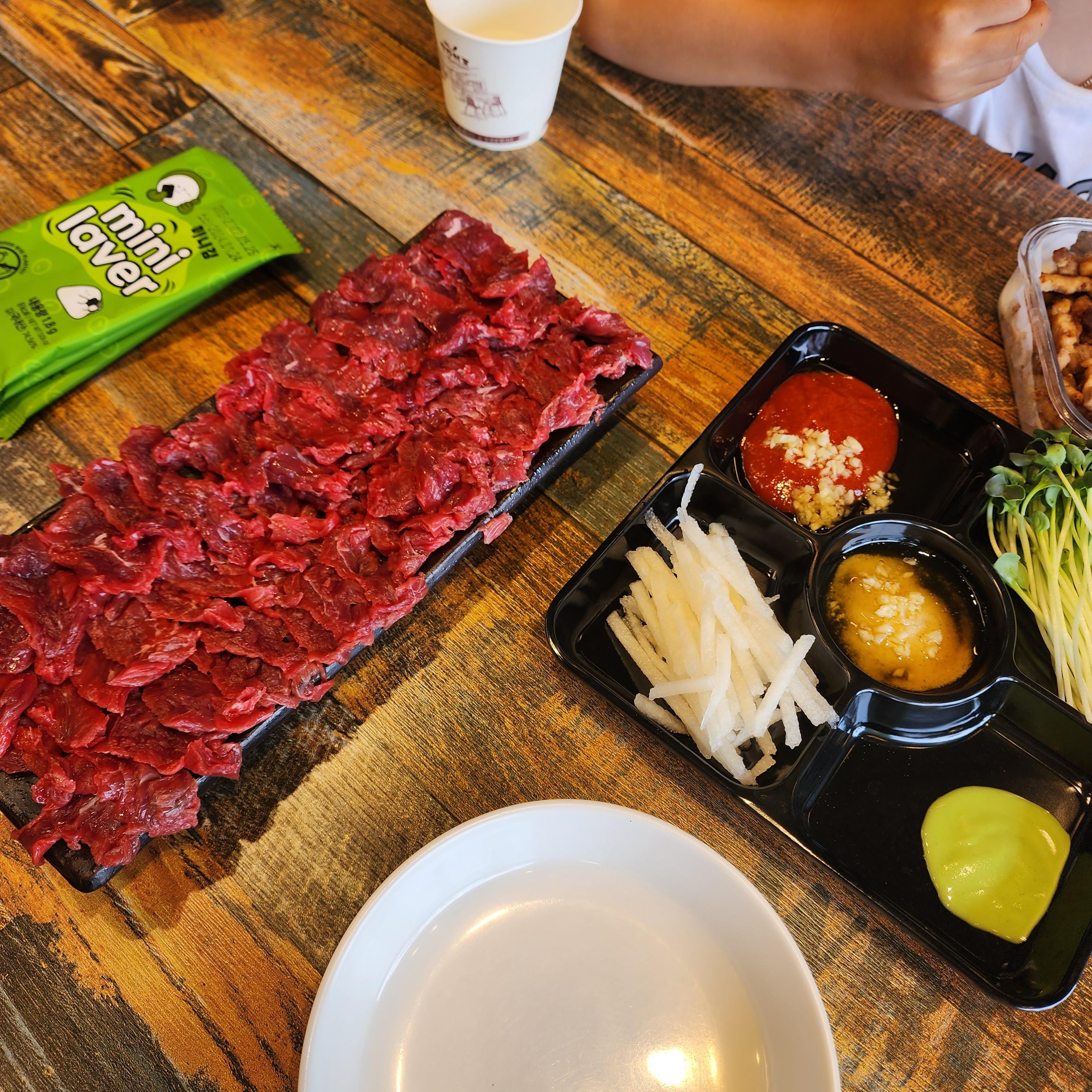 원래 아이 낳고 육회집은 진짜 한 번도 못 갔는데.. 제가 육회 진짜 좋아하거든요.