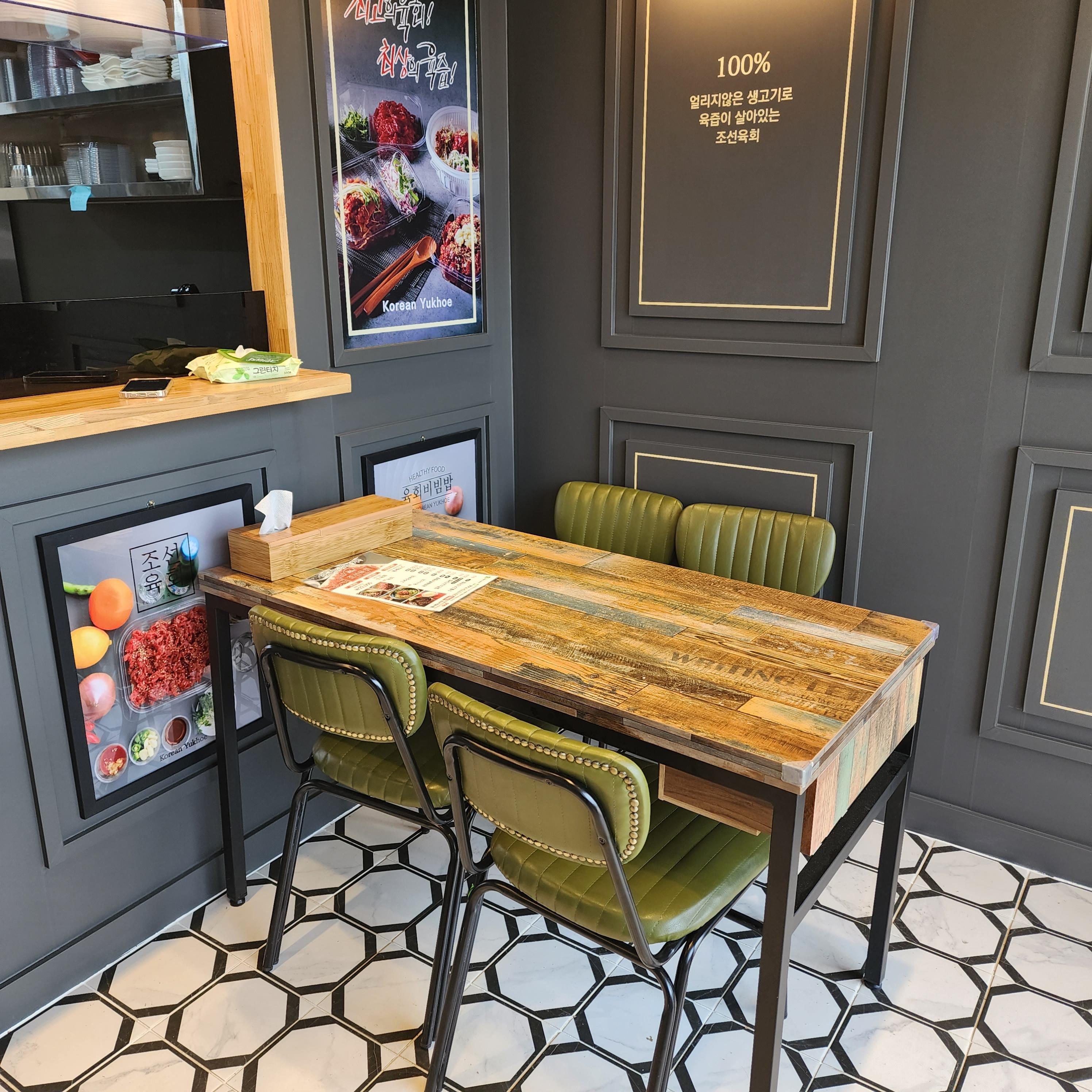 조선육회 양평점은 실내 공간은 4인석 테이블 하나, 바로 된 3인 테이블이 놓여져 있어요.