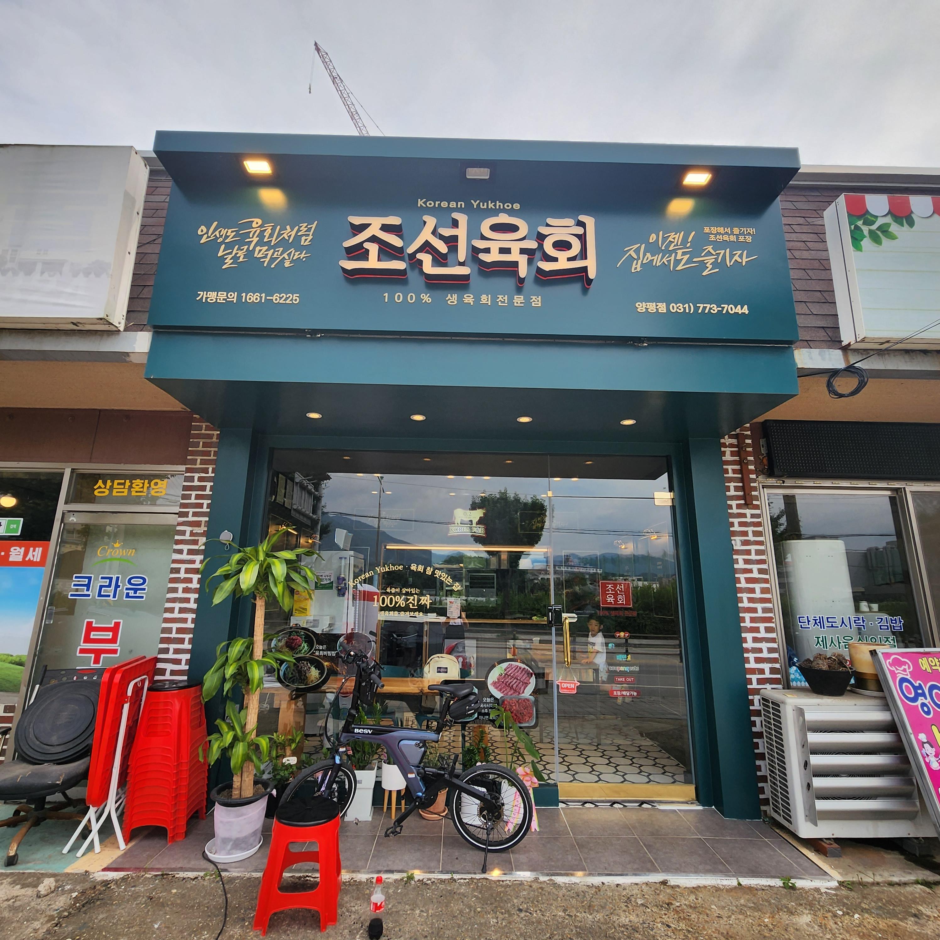 그러다가 양평터미널쯤 지나서 빨강색 조선육회라는 글자가 눈에 딱 띄더라고요!