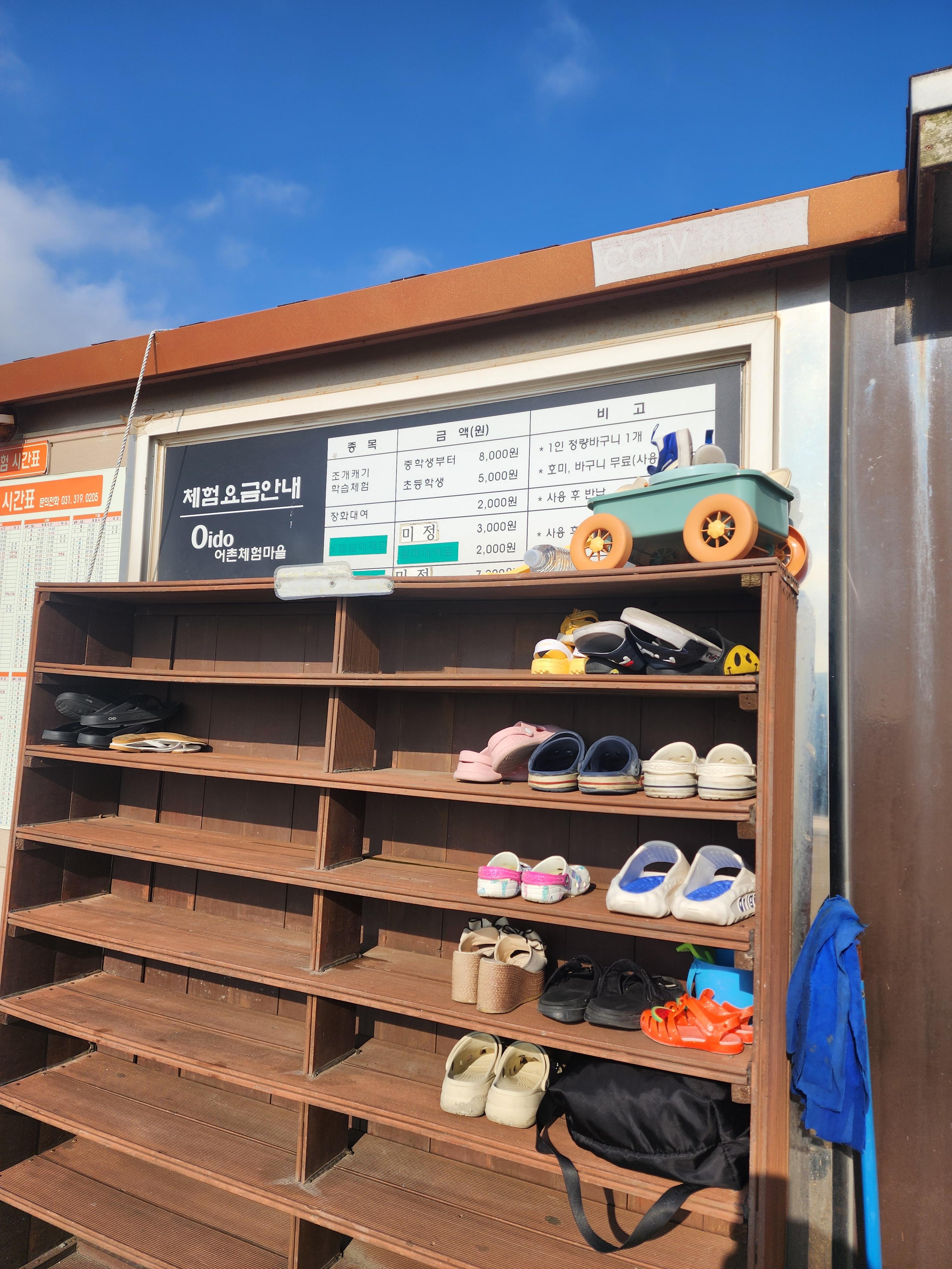 오이도 어촌체험마을이 지도상 검색하면 어떤 건물에 위치해 있는데 그쪽으로 가면 안 되고 빨간등대 앞쪽의 오이도항 선착장이 있는 바다로 걸어가셔야 체험안내소가 있어요.