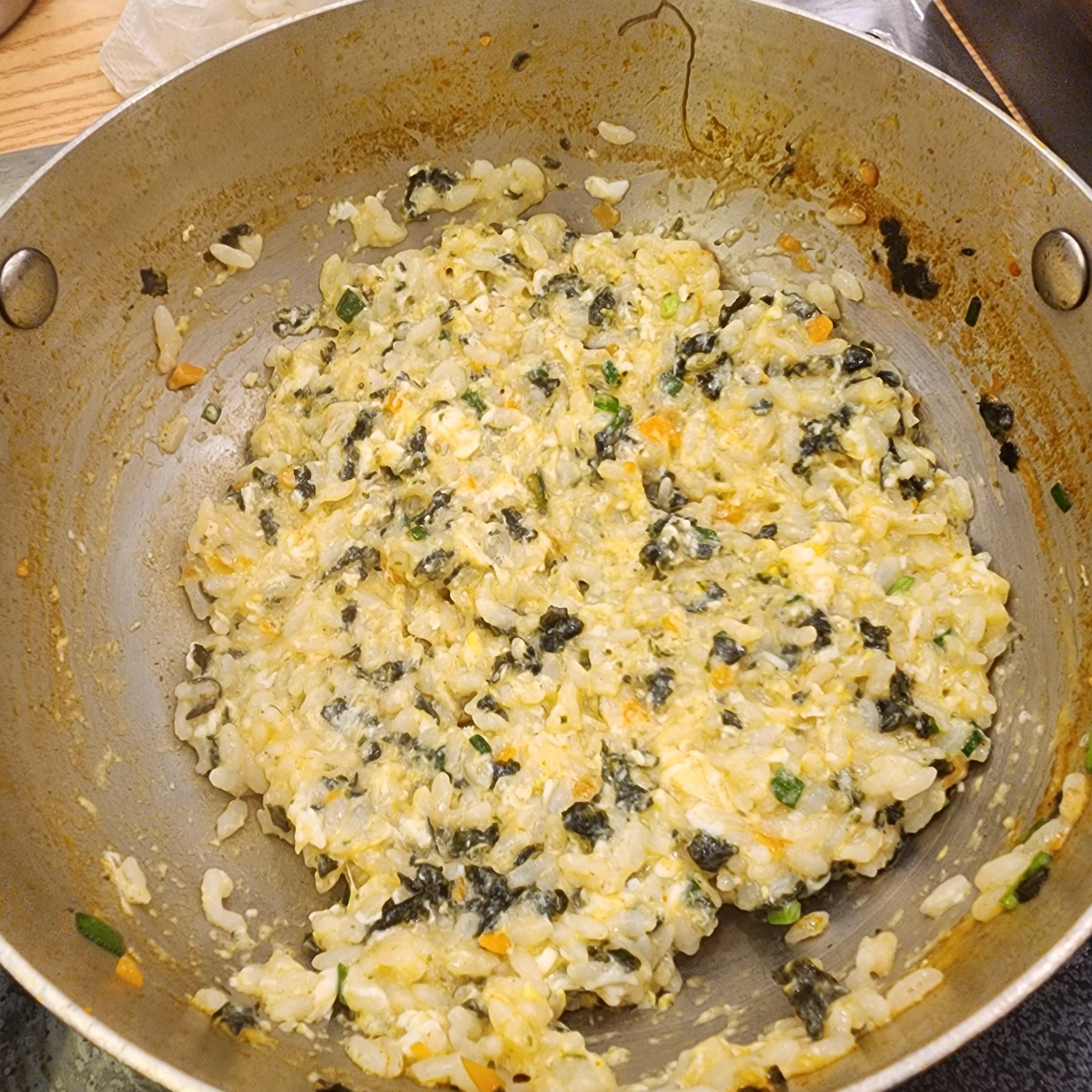 계란 하나랑 송송 썬 야채에 밥, 김가루 이렇게 나와요.