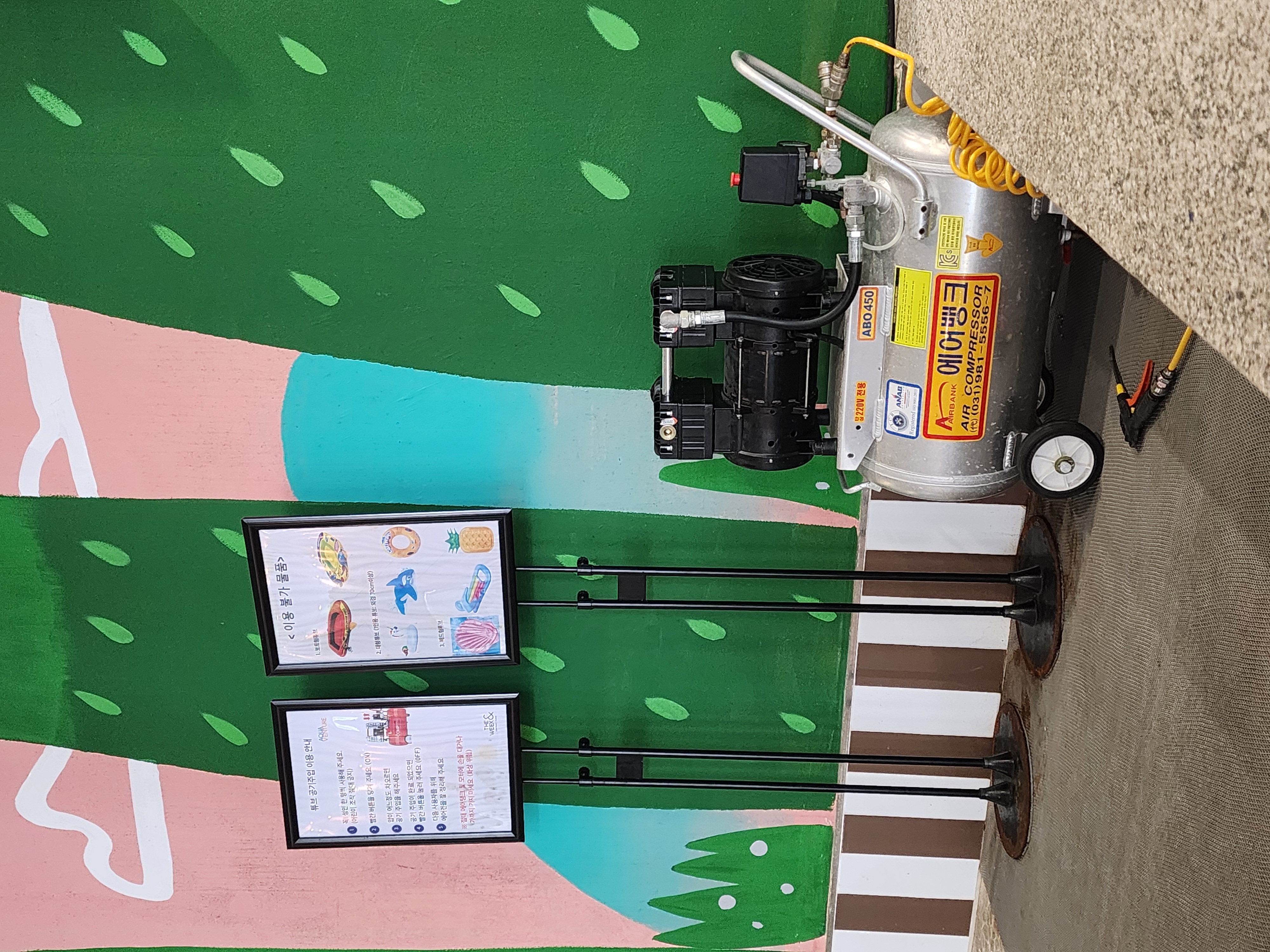 들어가자마자 왼쪽에 튜브 바람 넣는 공기주입기가 준비되어 있어요.