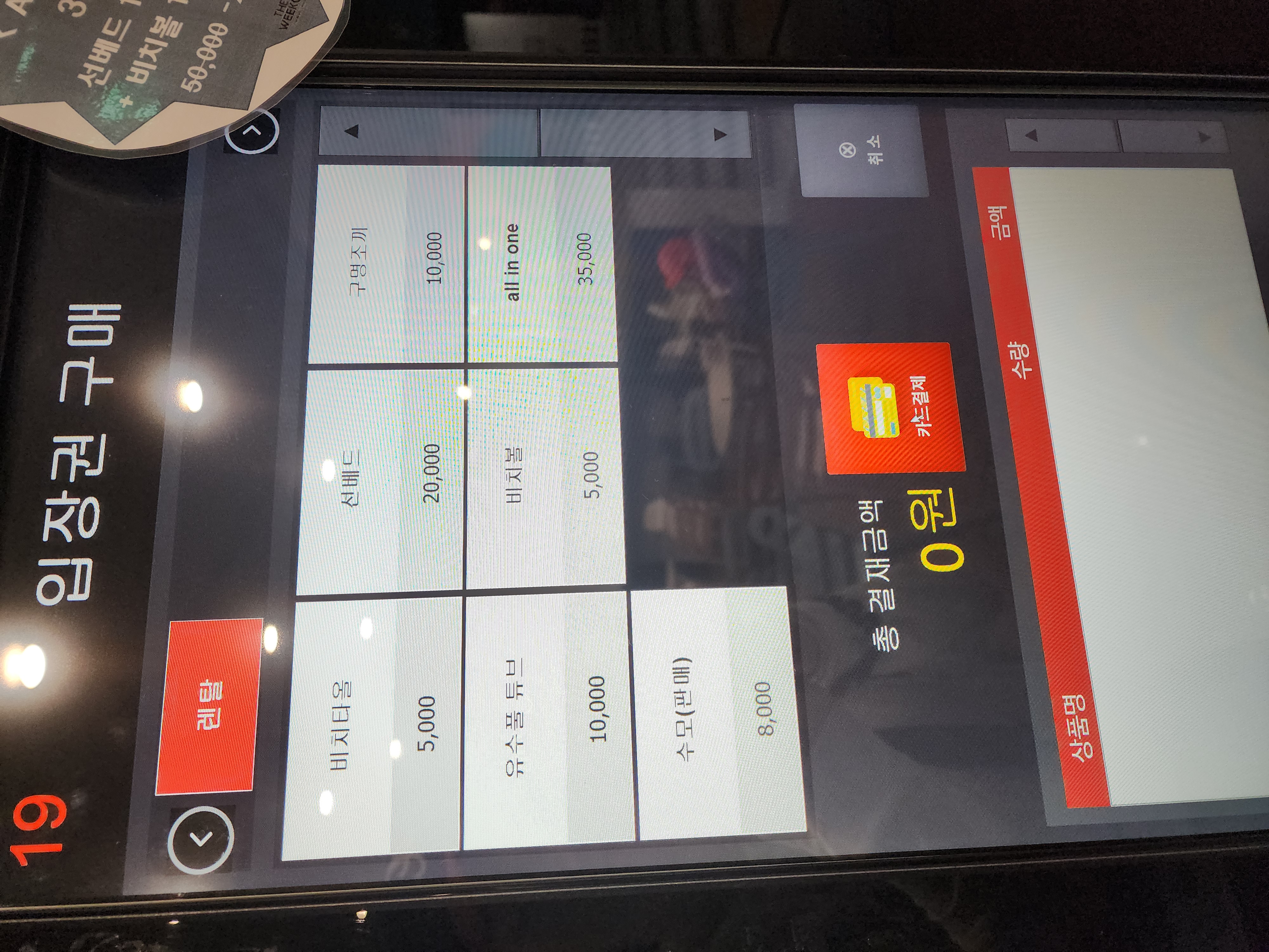 키오스크에는 구매 가능한 용품들도 나와 있습니다.