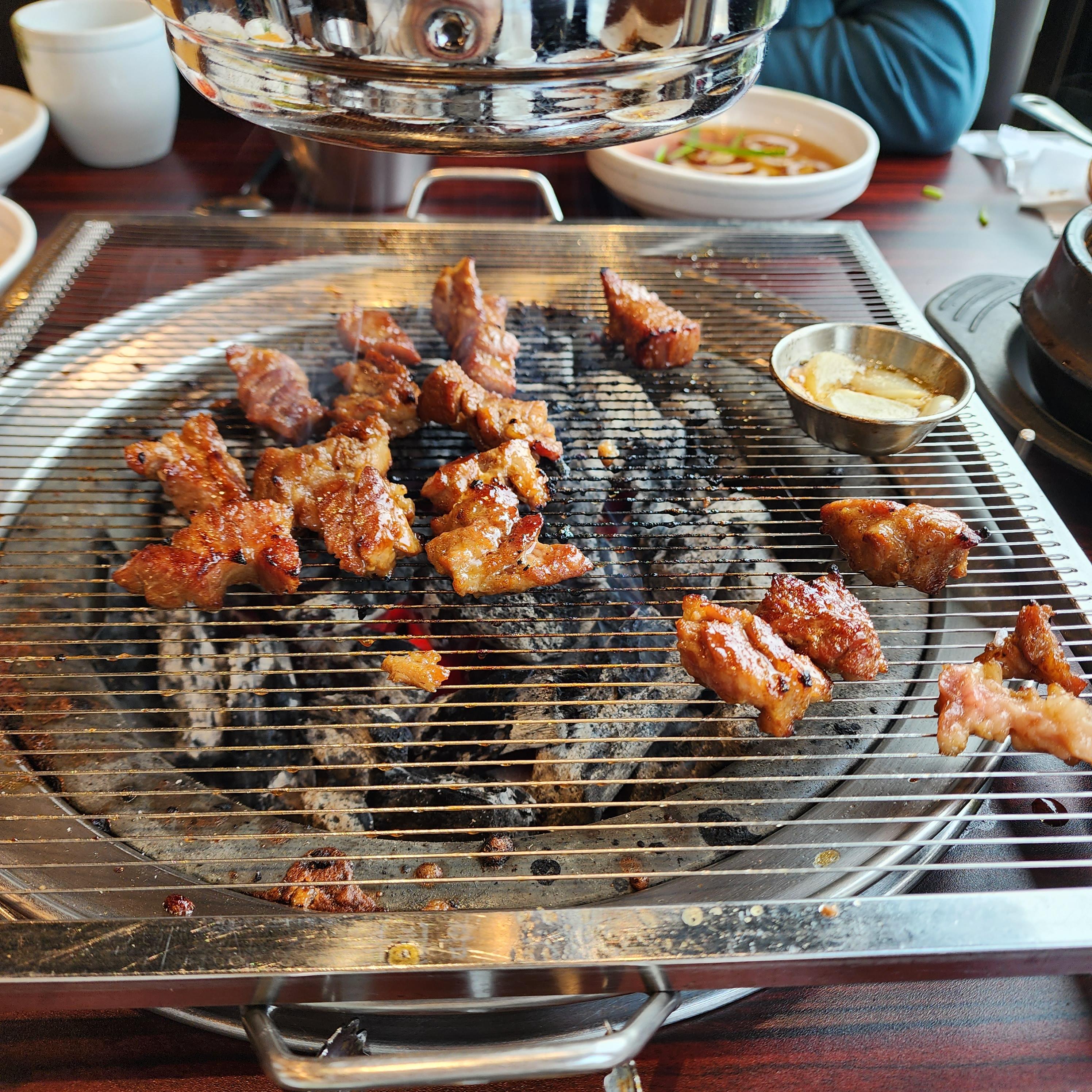 마늘도 이렇게 따로 기름에 넣어서 구워주시더라고요. 하..고기가 살살 녹아요.