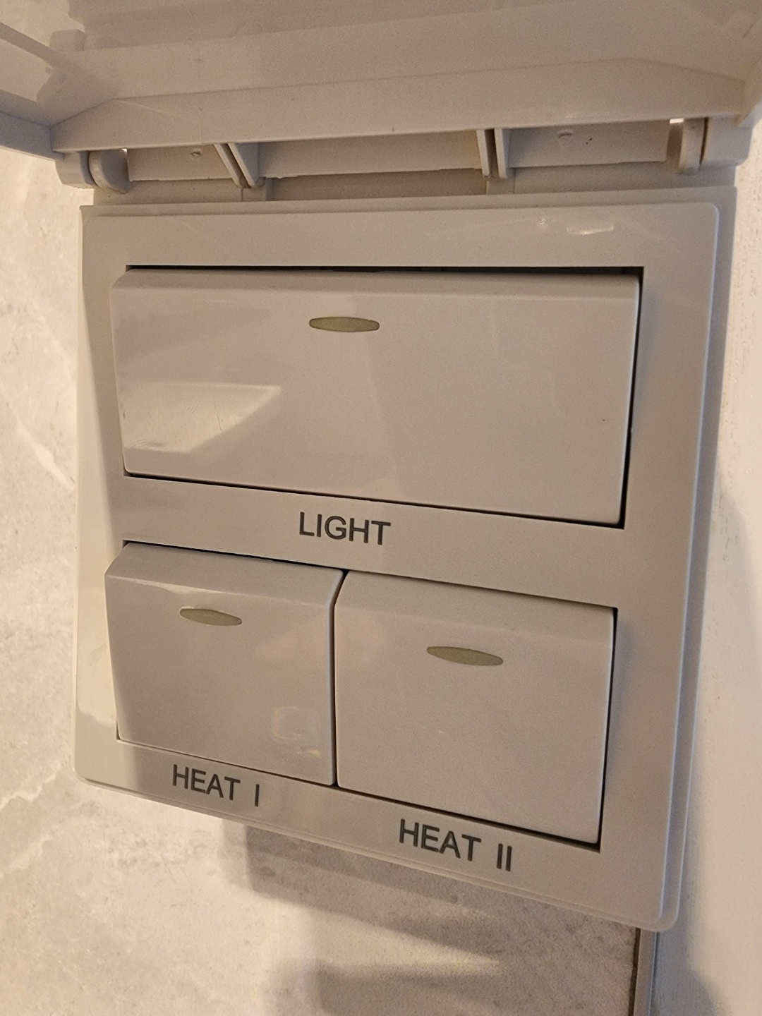 그런데 다행히도 화장실이 항상 따뜻할 수 있도록 욕실 난방기가 설치되어 있다.