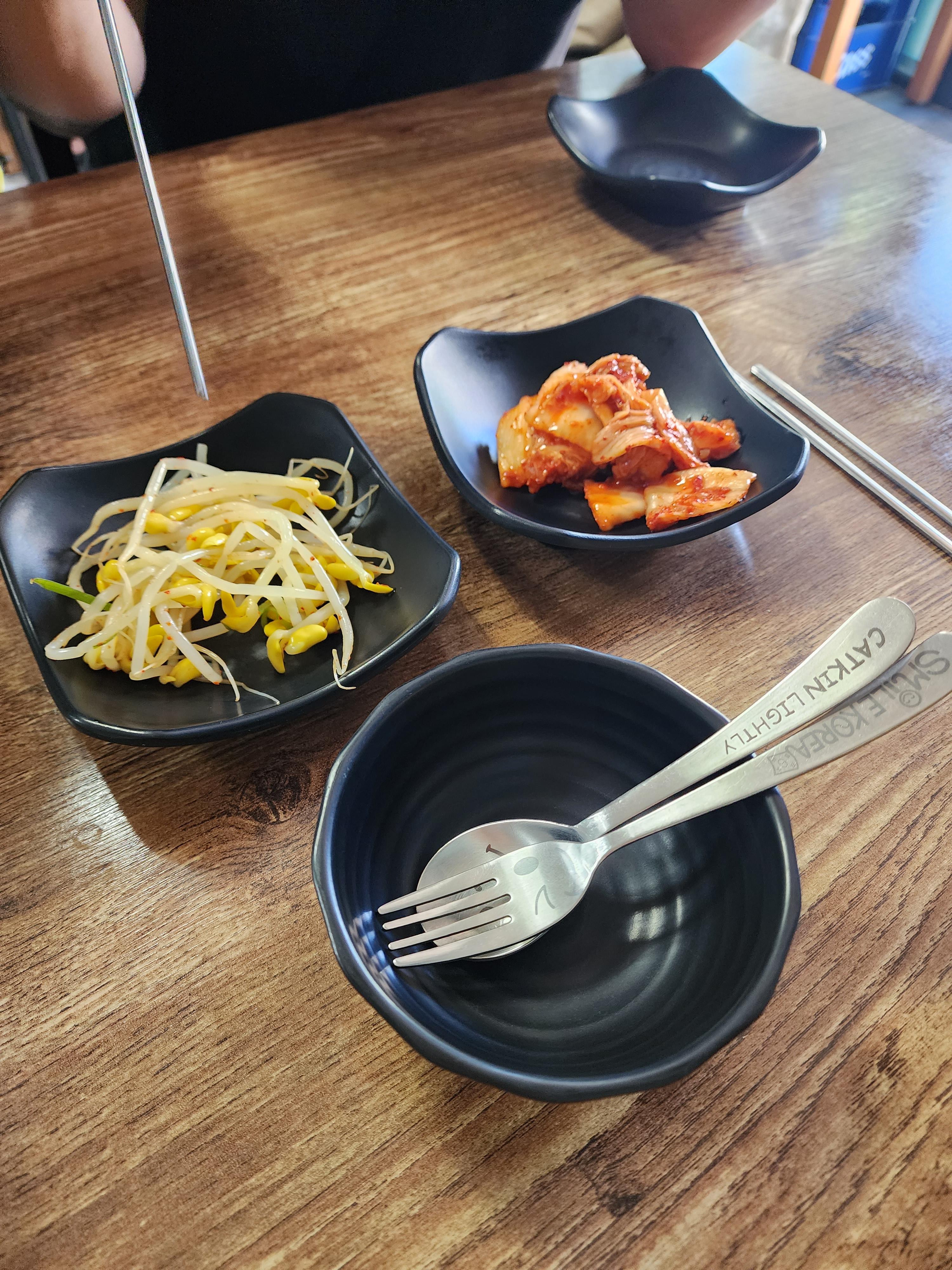 이번엔 고추지, 단무지무침, 콩나물, 김치 이렇게 있어요.
