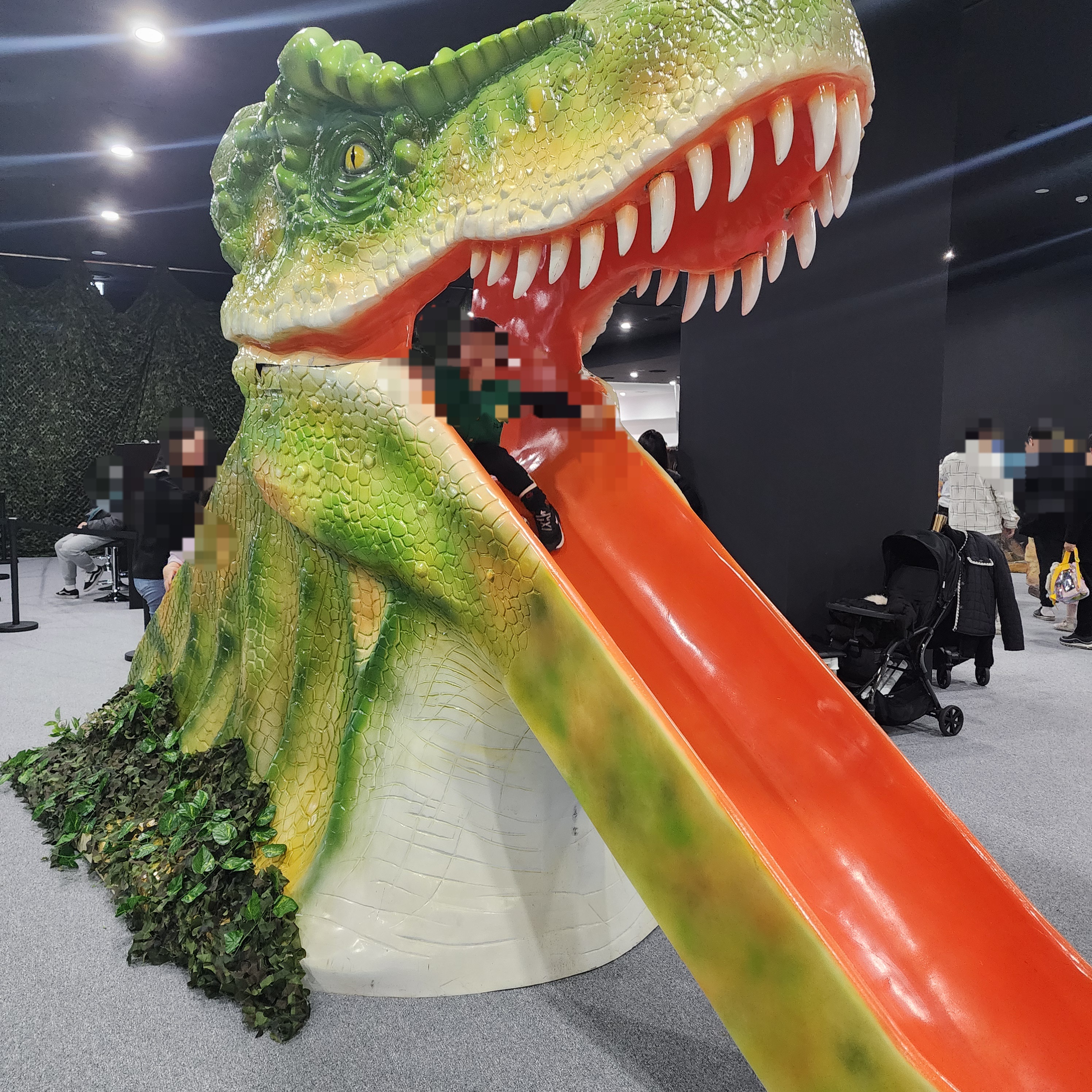 입장하고서 움직이는 공룡 전시들이 쭉 이어져 있고, 전시를 보고 나오면 정글짐과 방방이를 이용할 수 있고요. 그다음 체험관이 마련되어 있어요.