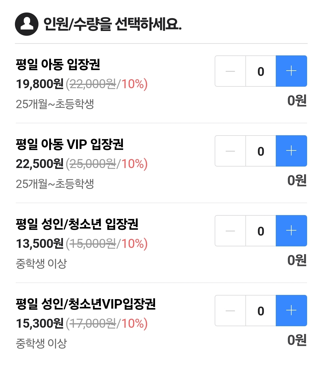 현재 입장료는 아래와 같아요!