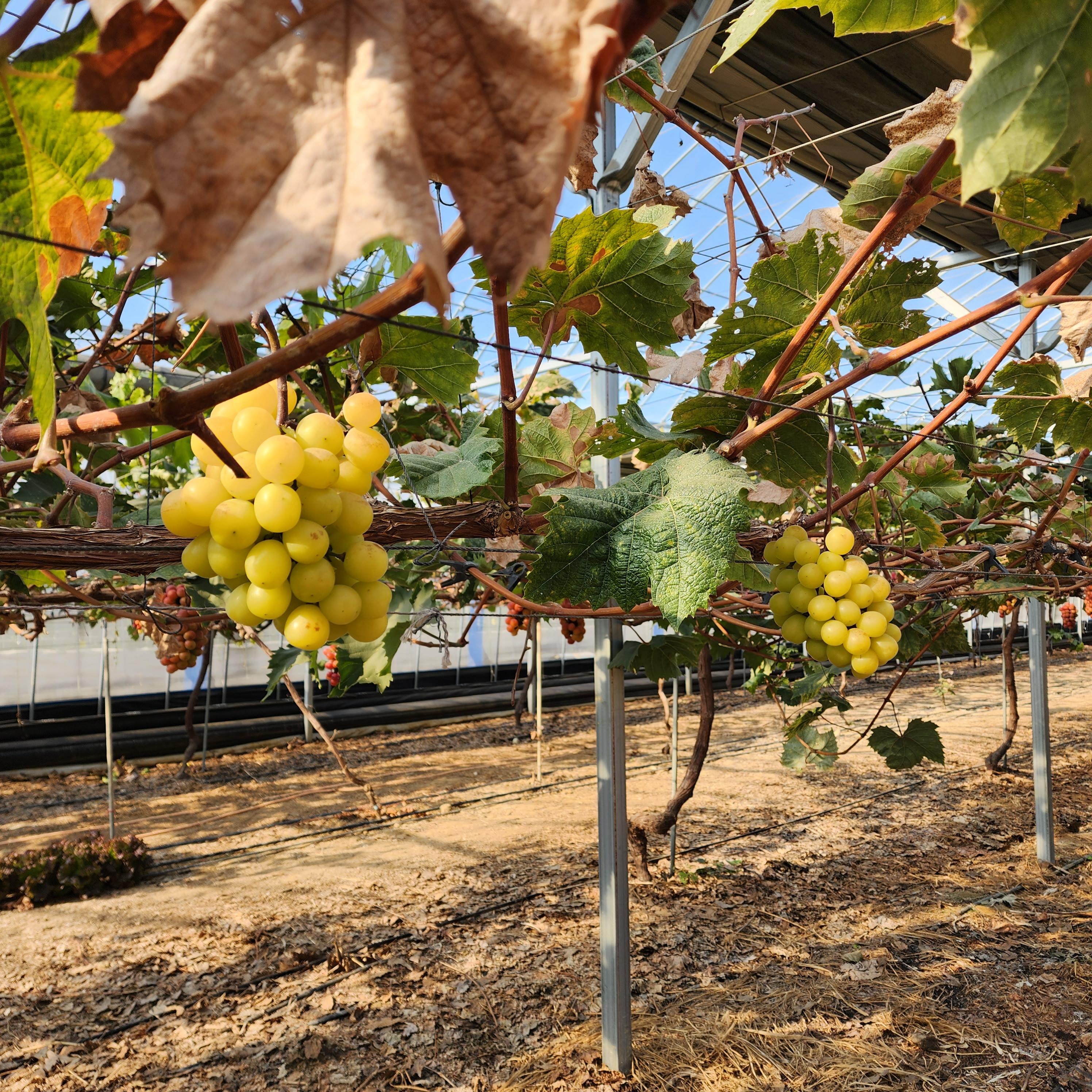 요렇게 탐스런 샤인머스캣들이 주렁주렁 열려있어요. 엄청 실하고 맛있습니다!