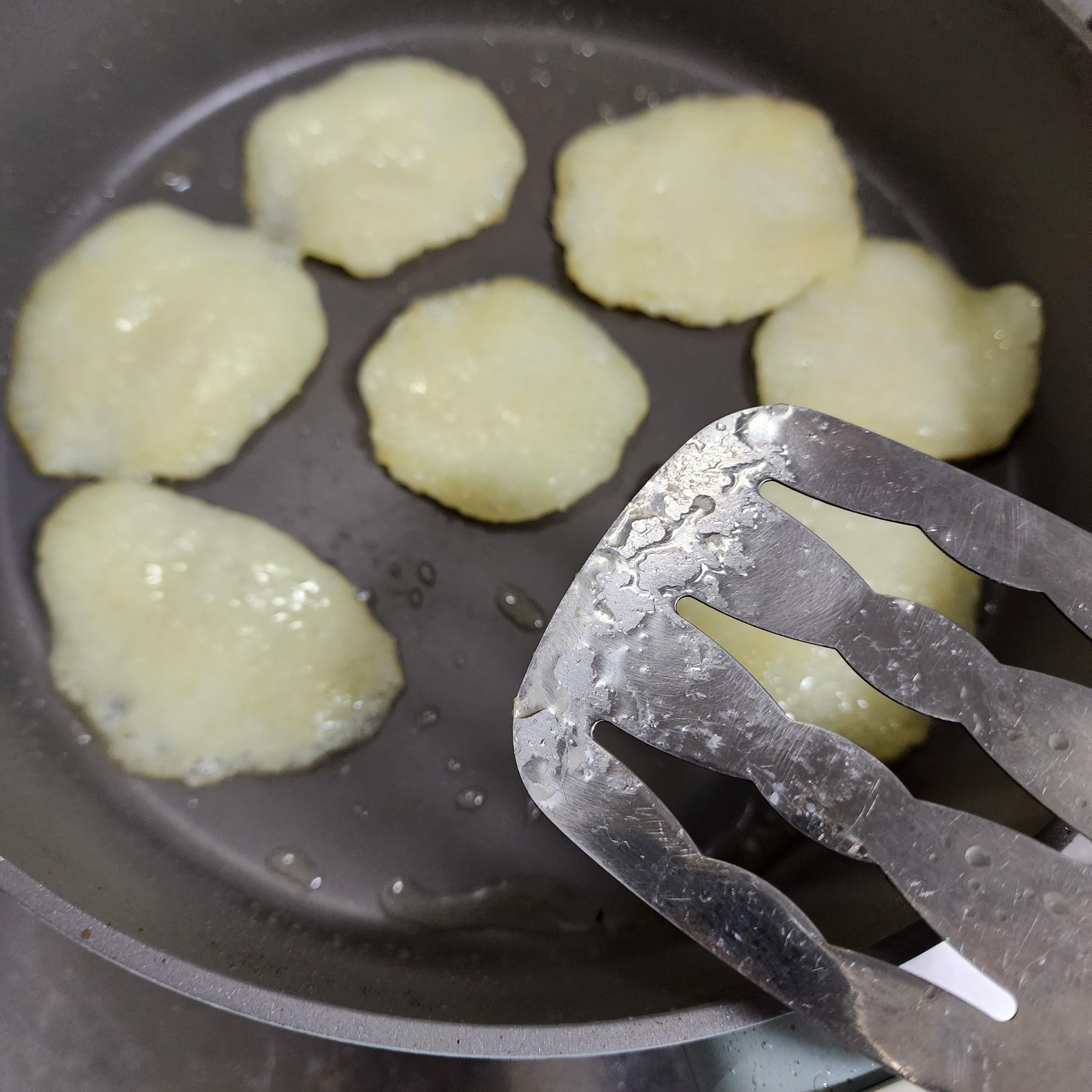 뒷면이 노릇노릇해지면 뒤집어요.