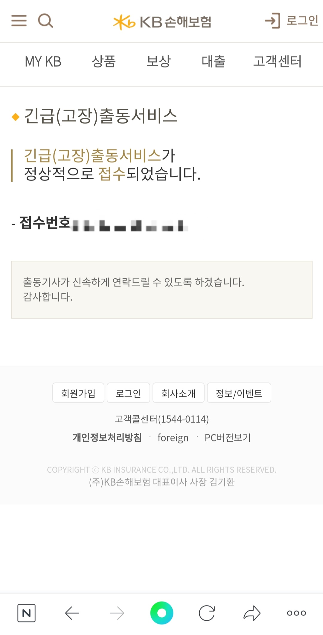 저는 KB손해보험에 가입한 상태여서 네이버에 'kb손해보험' 검색했더니 바로 밑에 긴급(고장)출동서비스 클릭할 수 있었어요!