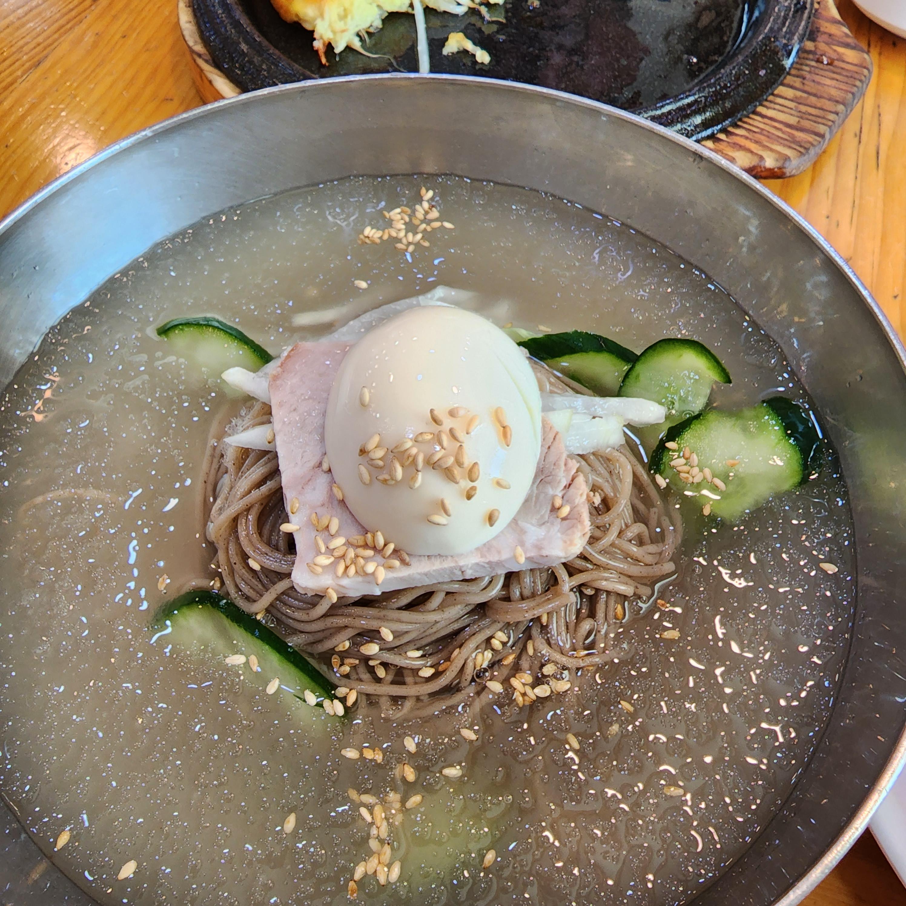 제일 유명한 건 메밀막국수다. 난 무조건 물막국수인데, 온메밀도 있고, 비빔도 있고 다양하다.