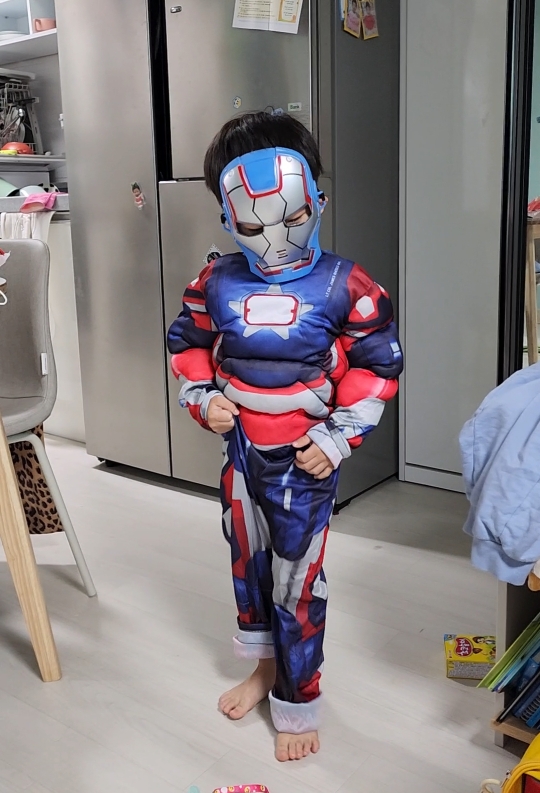 영웅 코스튬은 몸에 꼭 근육솜이 들어가 있어야 실감나고 좋아하는 것 같아요. 없는 것도 있으니 잘 보고 구매하세요~!