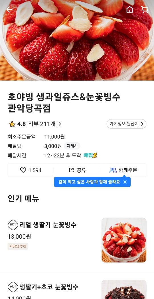 딸기가 사계절 나오는 게 아닌데 사계절 내내 찾아서 아주 곤란하던 차에 혹시나 하고 배달의민족 검색을 해봤거든요!!