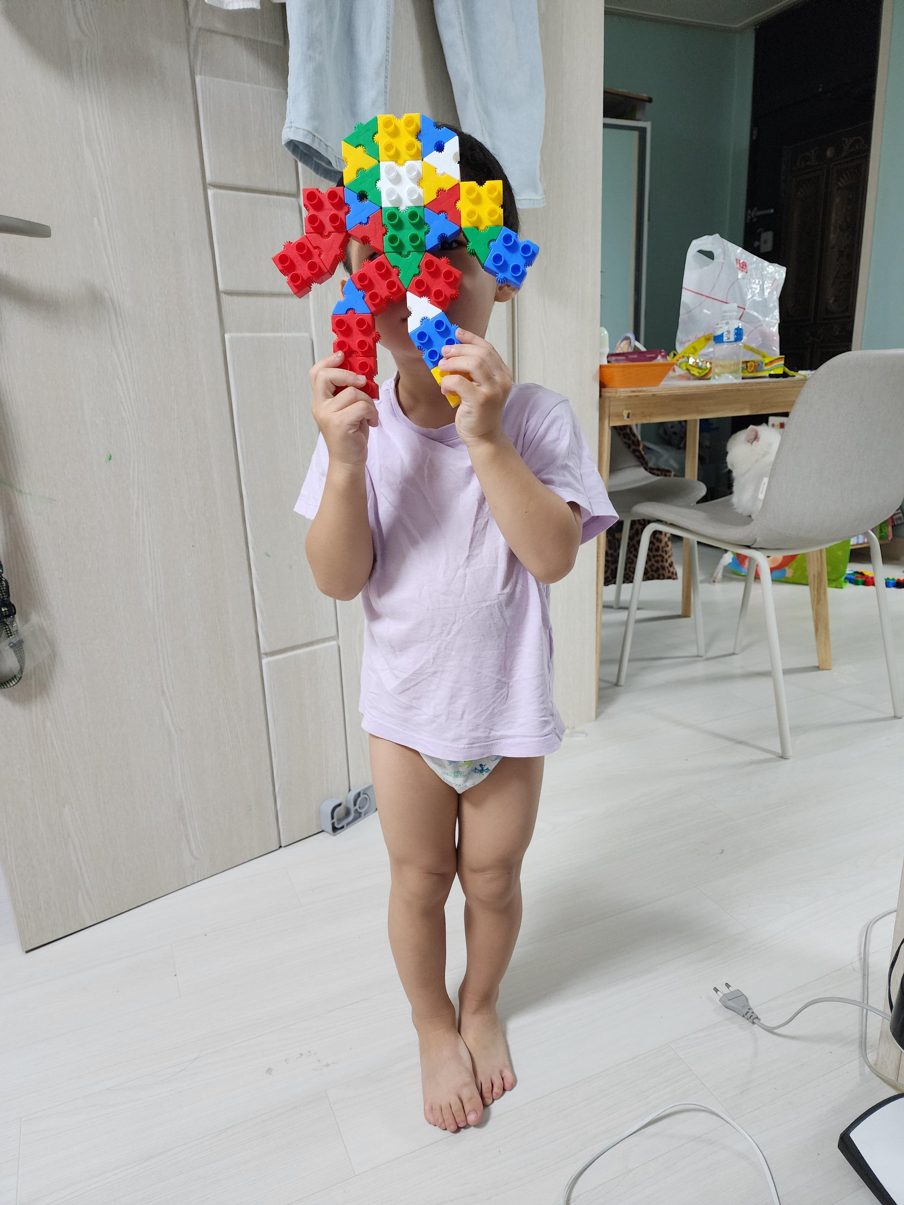사진 속에서 보는 것처럼 진짜 다양하게도 만들고 논다. 이틀에 한 번꼴로 몰펀블럭을 사용해 놀이하고 있고, 금방 질려하지 않는다.