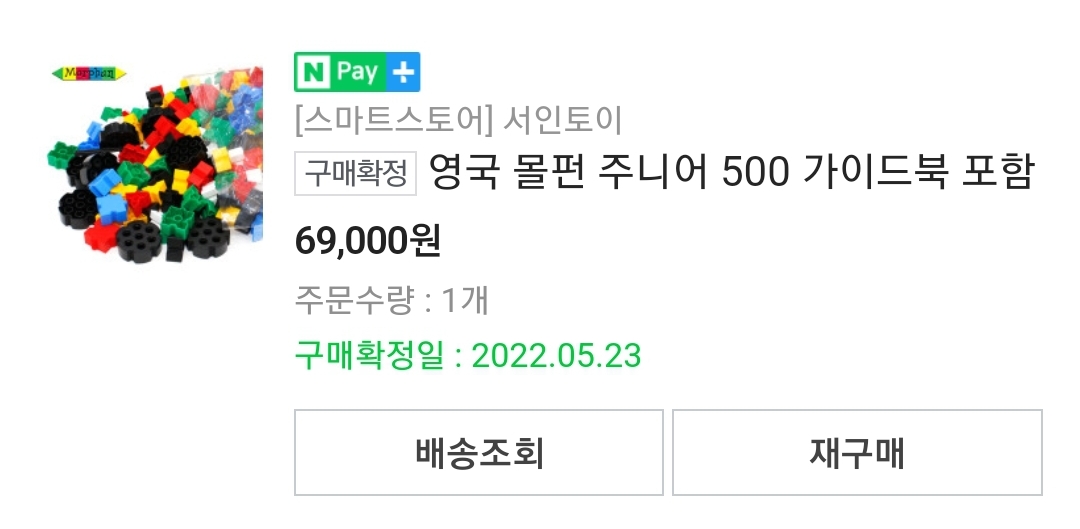 내가 구매한 날짜를 찾아보니 올해 5월이었는데, 웬만한 장난감들은 몇 번 가지고 놀면 금방 질려서 꺼내지 않는 경우도 많지만 몰펀 블럭은 지금 10월까지도 꾸준히 아주 잘 가지고 놀고 있다.